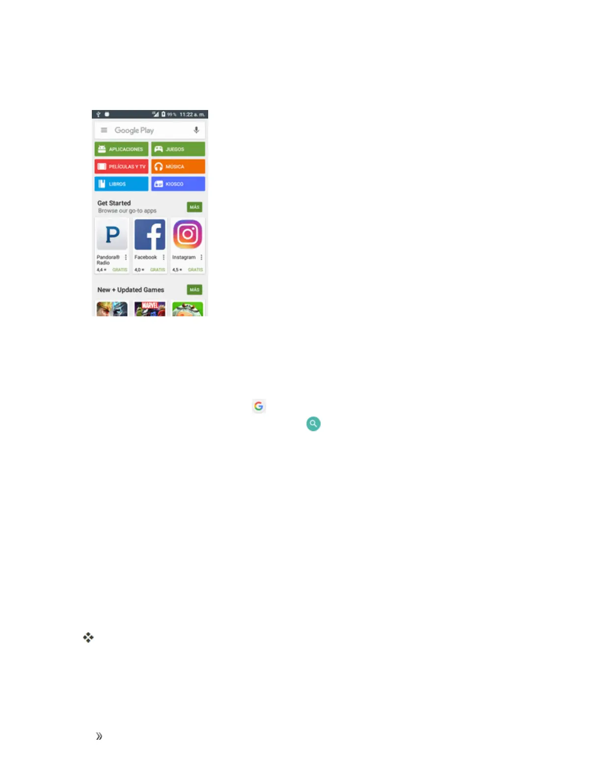 Busqueunaaplicación.Toque enlapantalladeiniciodeGooglePlay,ingreseelnombre