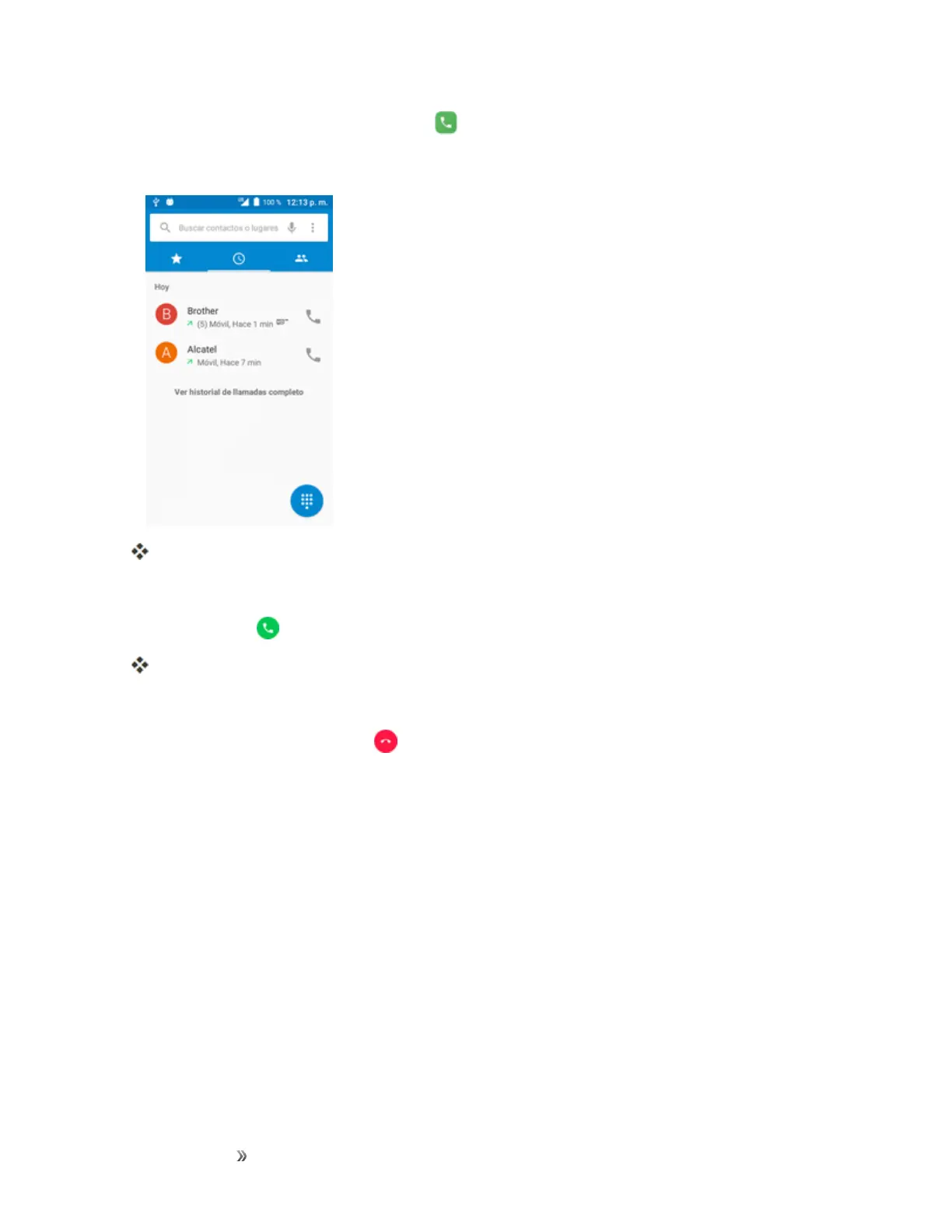 Consejo:Tambiénpuederealizarunallamadadesdelalistadelregistrodellamadas.Deslicela