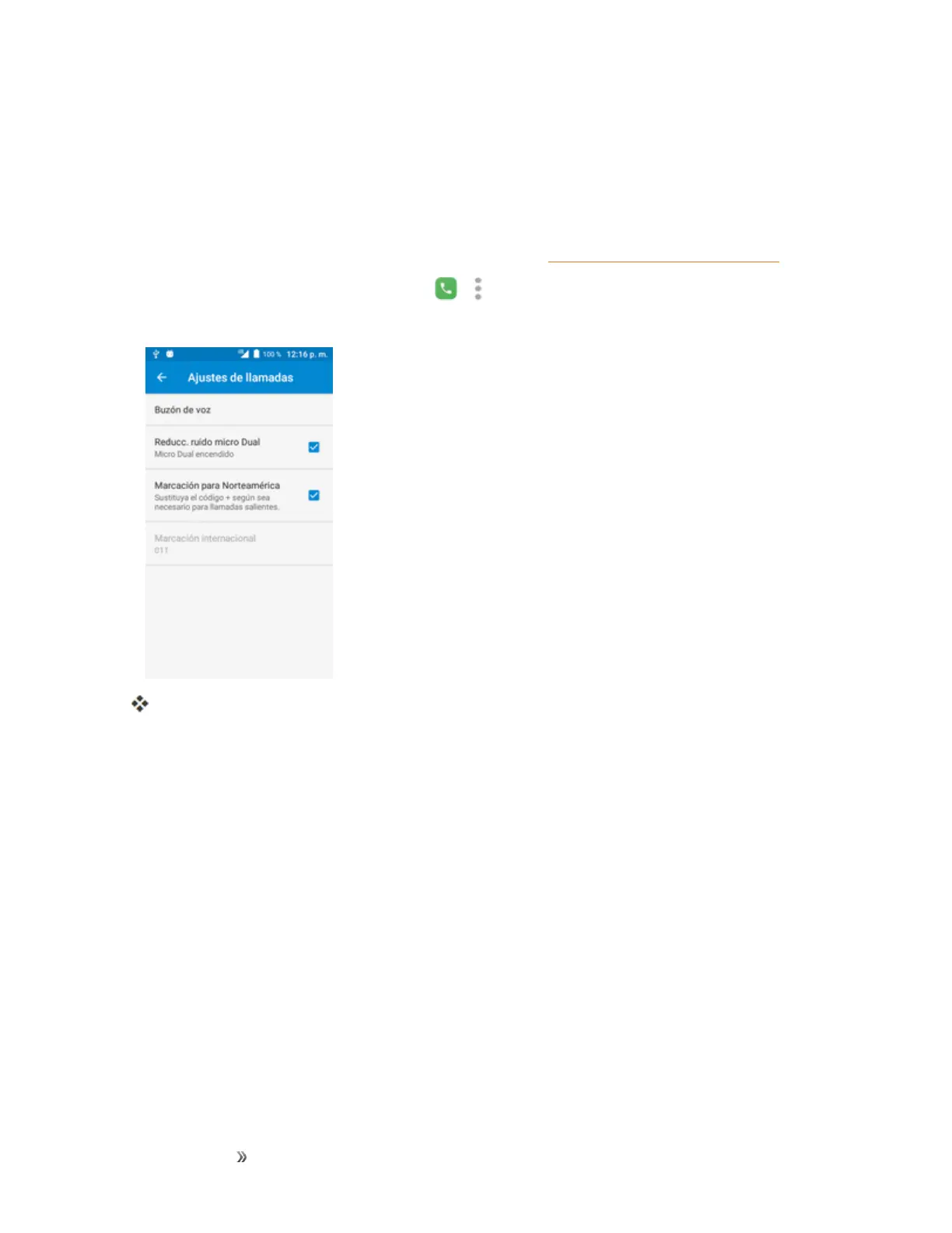 EnlapantalladeInicio,toqueLlamada > >Ajustes>Ajustes de llamada>Buzón de