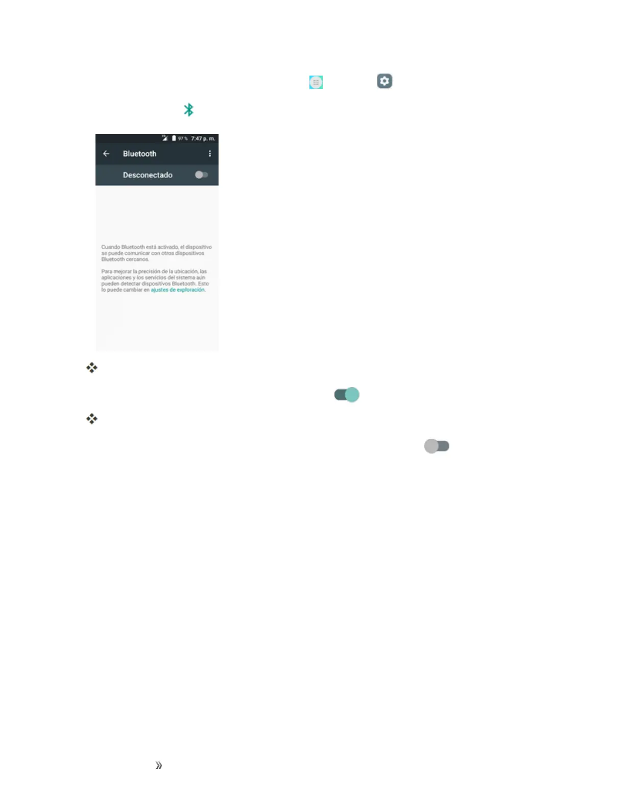 Nota:DesactiveBluetoothcuandonoloutiliceparaconservarsubatería,oenlugaresenlosque