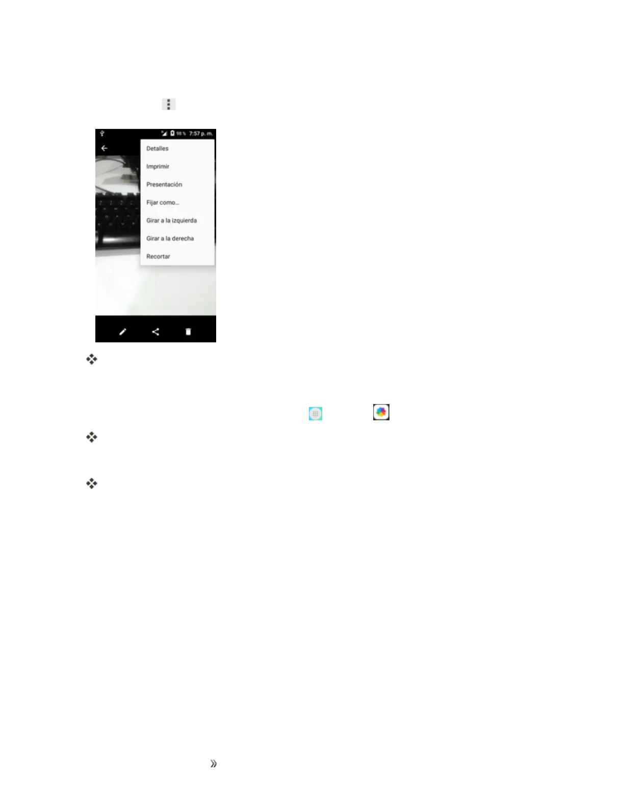 ToqueMenú y,acontinuación,seleccioneGirar a la izquierdaoGirar a la derecha.