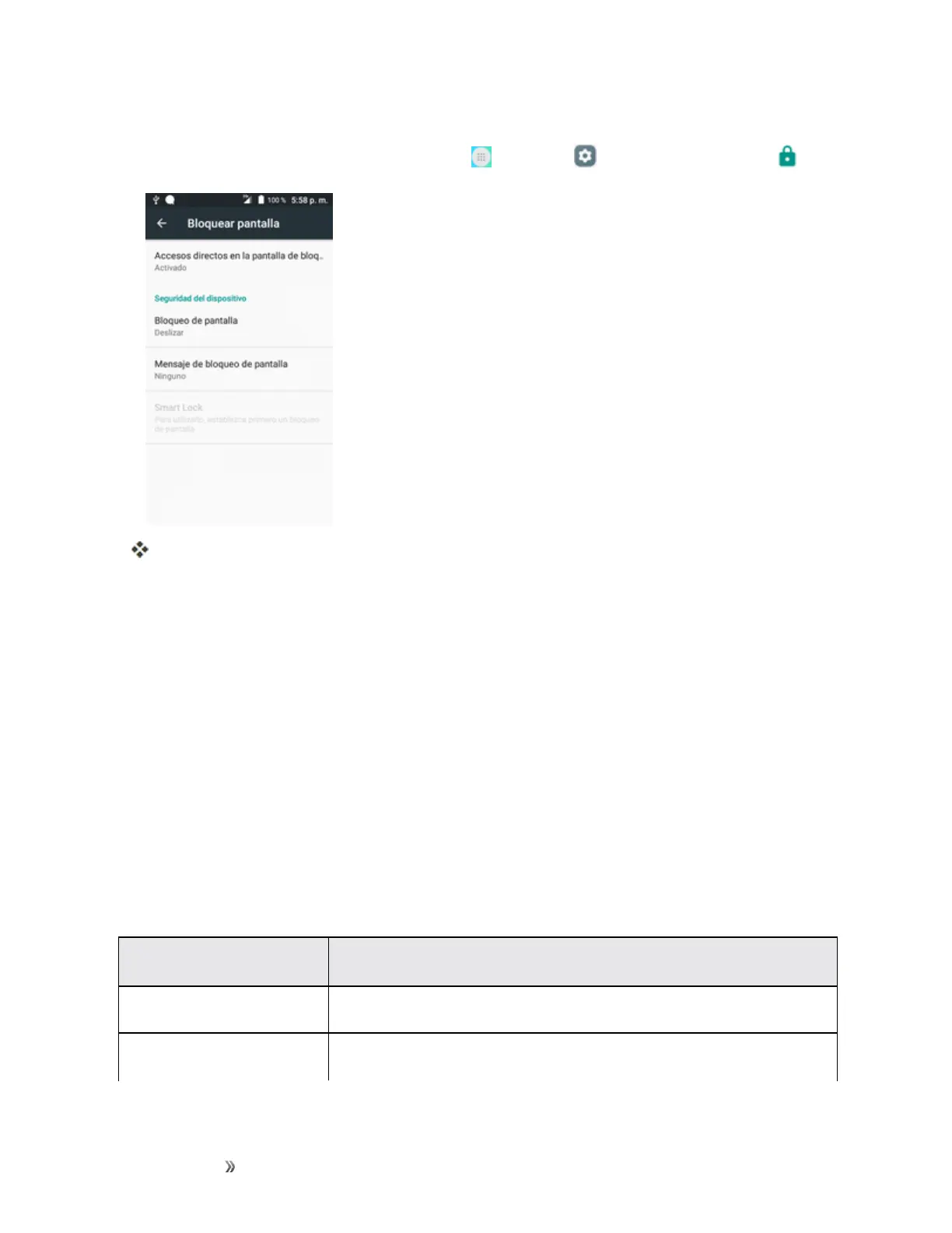 Acceso a las opciones del bloqueo de pantalla