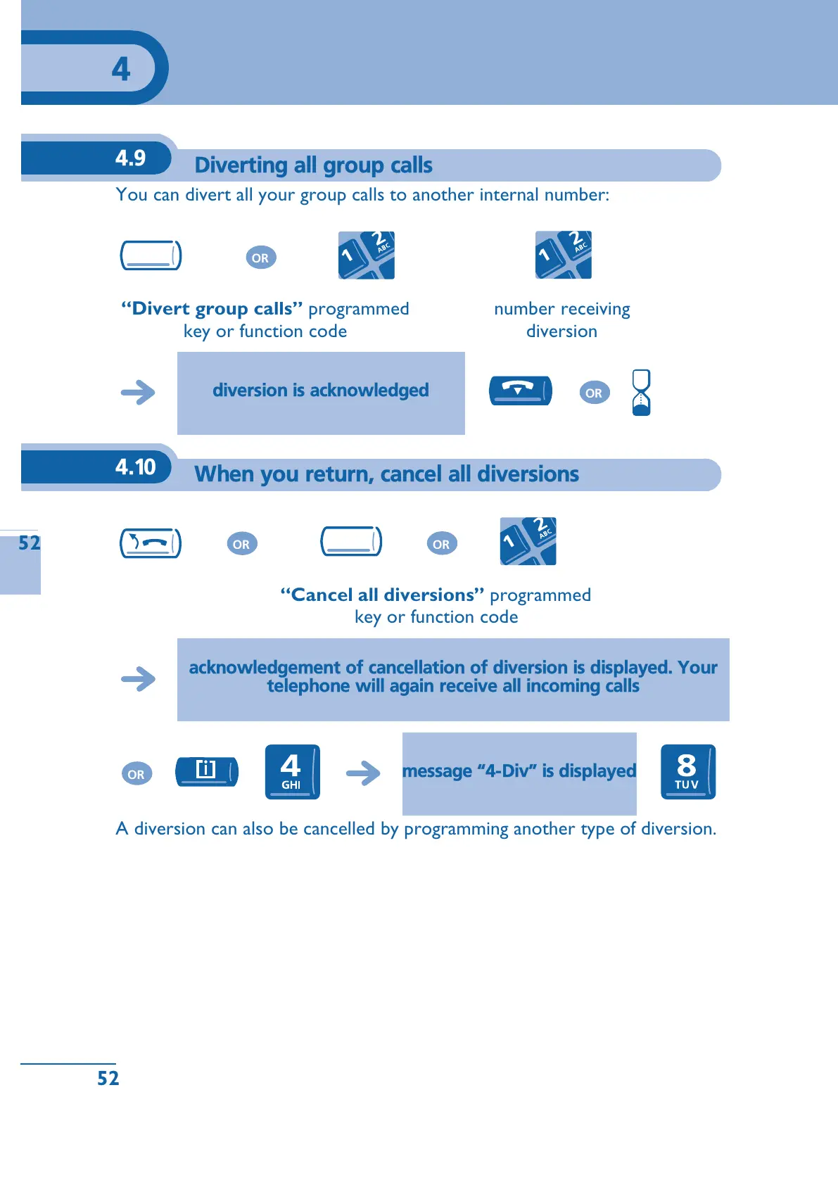 A diversion can also be cancelled by programming another type of diversion.