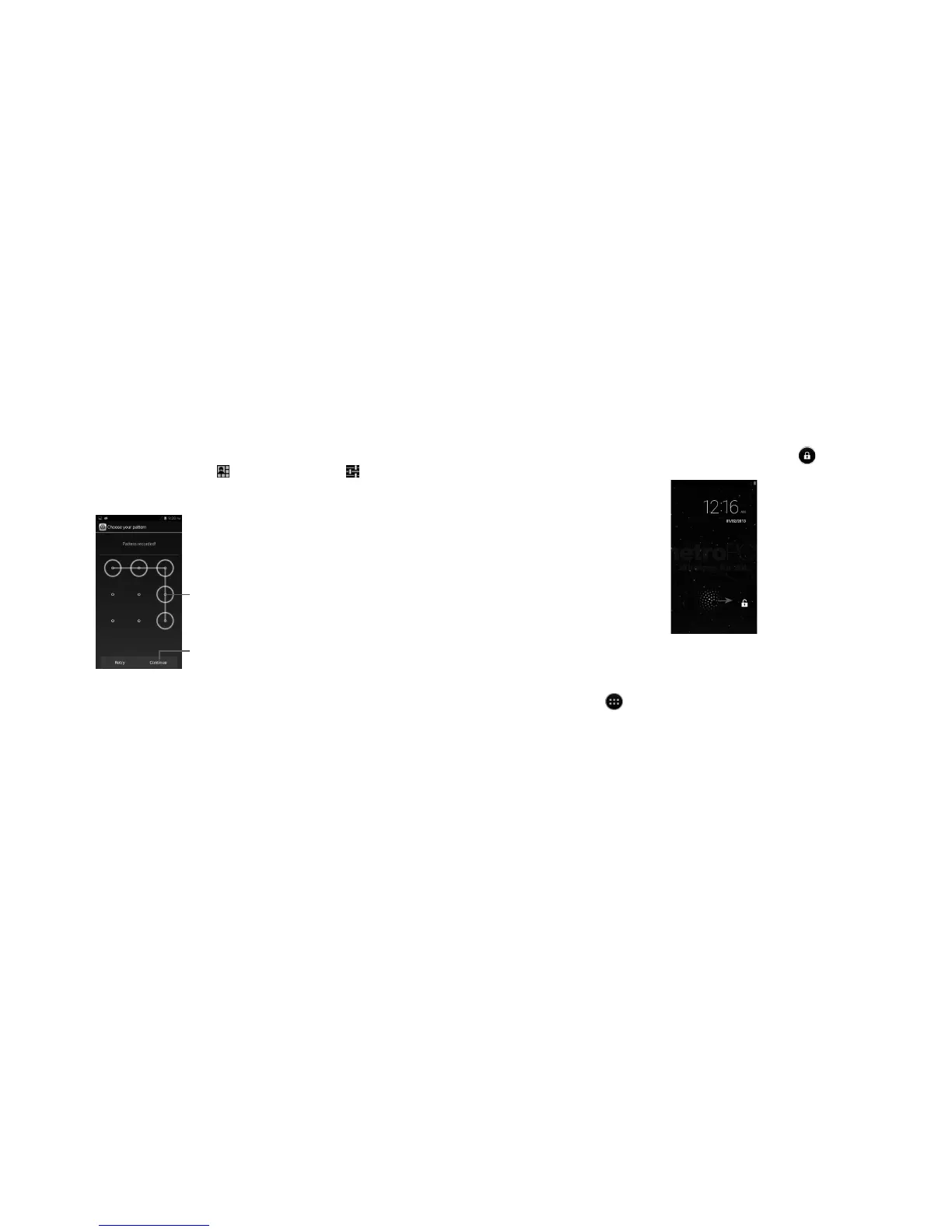 To create a screen unlock pattern (refer to section “Screen lock”for detail settings)