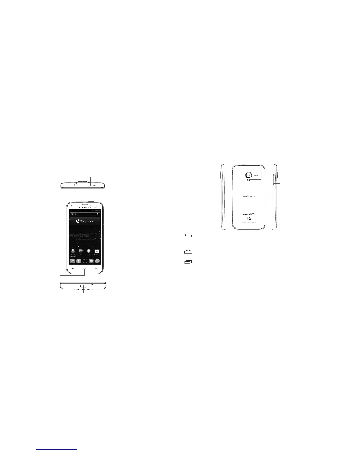 • Touch to go back to the previous screen, or to close a dialog box, options menu, the