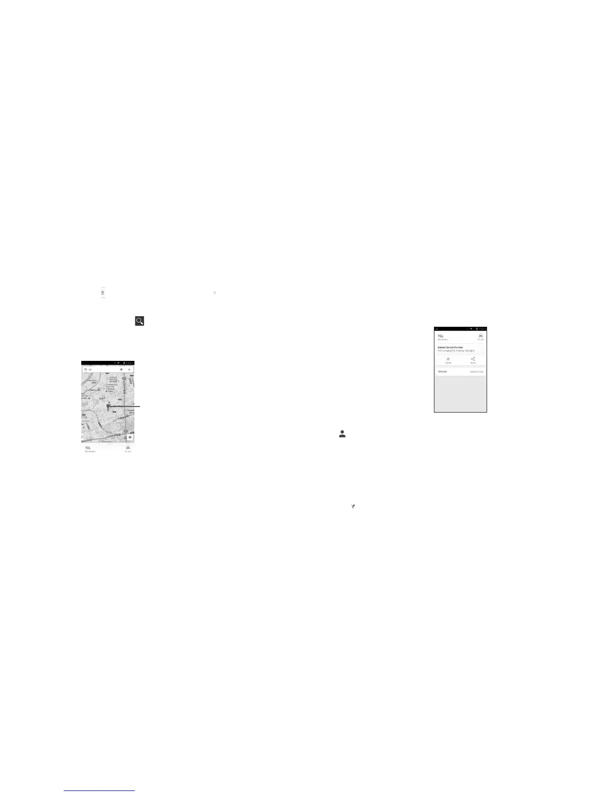 Touch the search icon to search, and in a while your search results will appear on the map as red dots.