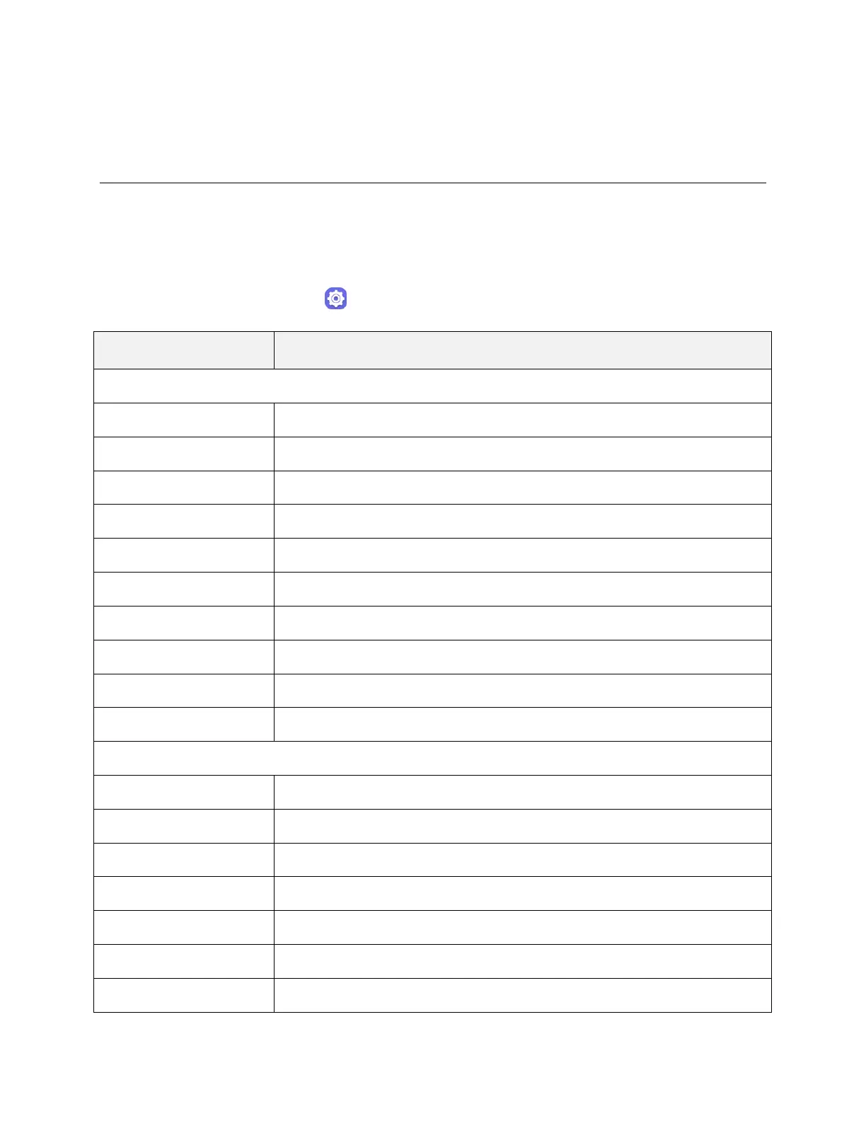 The table below outlines the top-level settings categories.