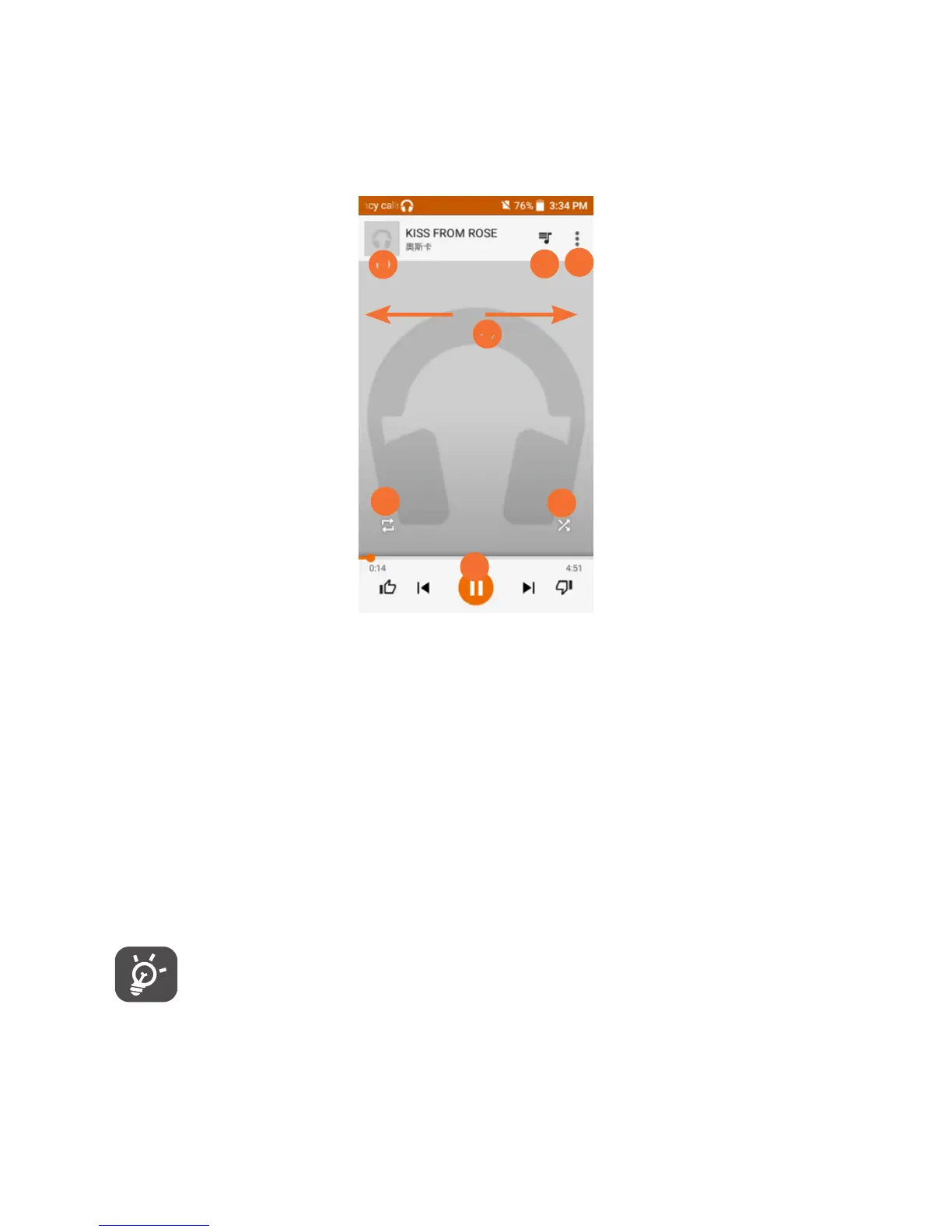 Swipe to right or left to skip to next or previous track in the