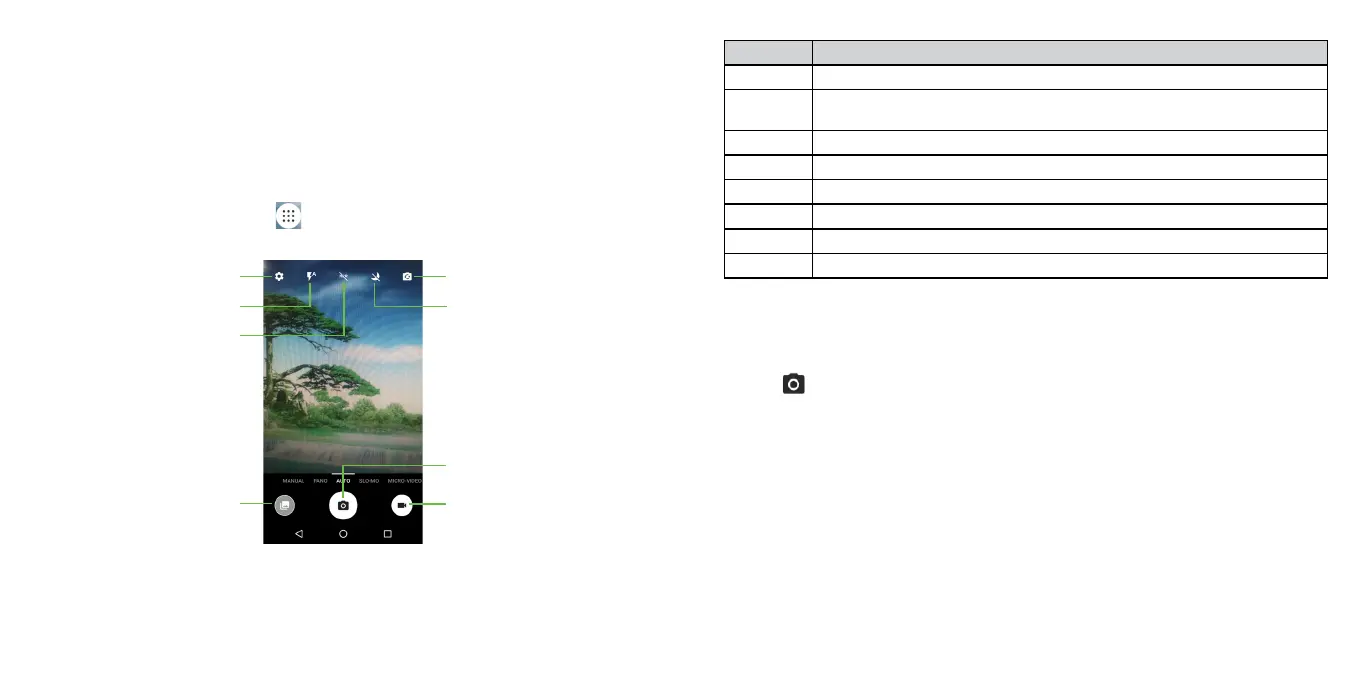 • PANO: Touch to turn on panorama function. Touch the shutter button to