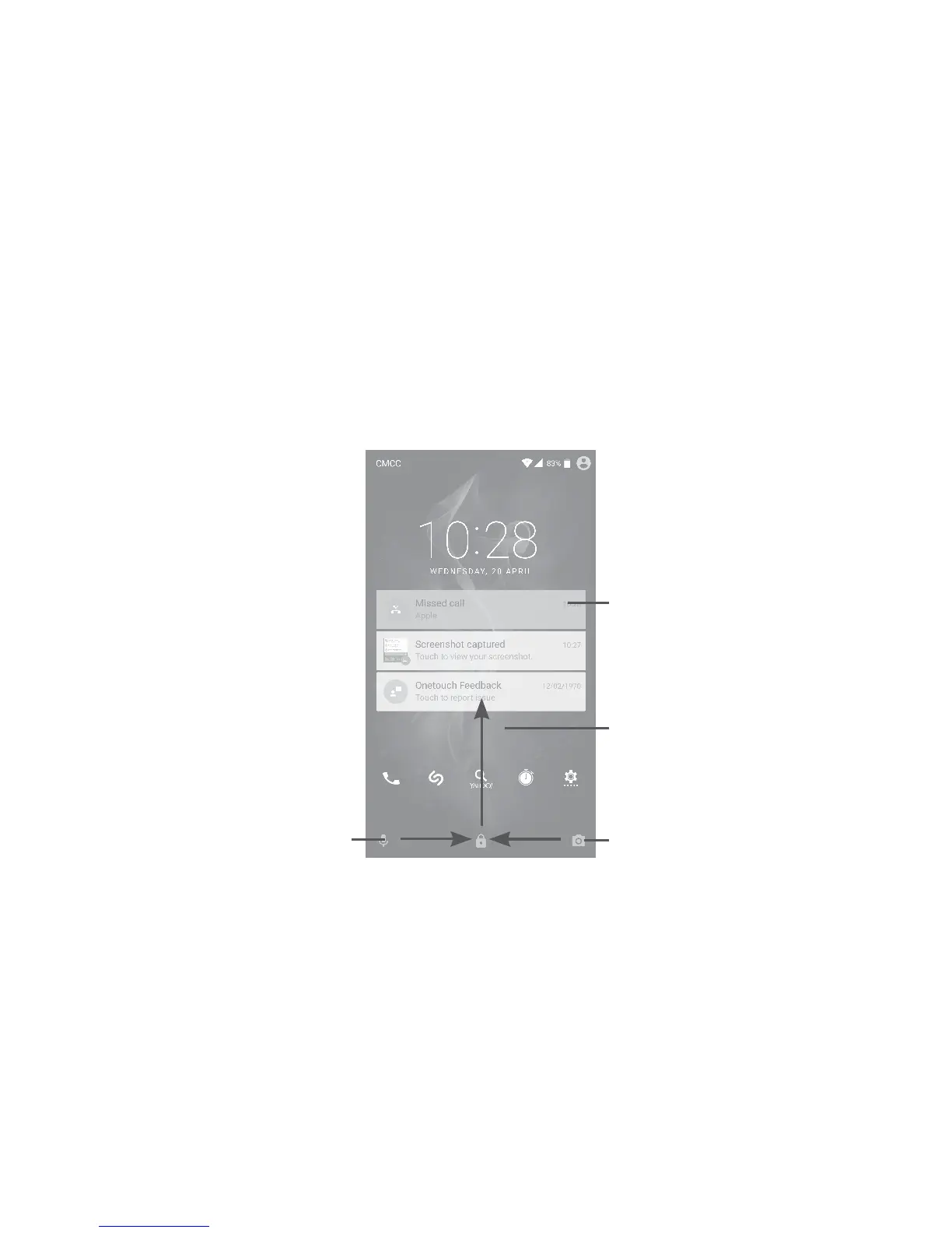 key to light up the screen, then swipe up to unlock the screen, swipe