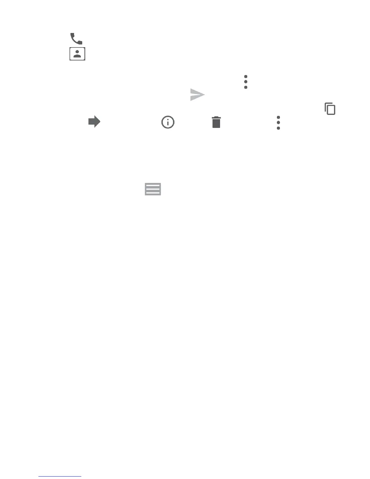 •Long press a message to show the following icons: copy text