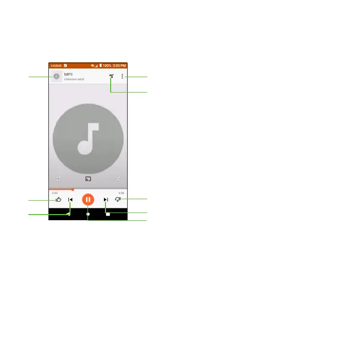 Tap a song in the music library to listen to it. The following playback screen