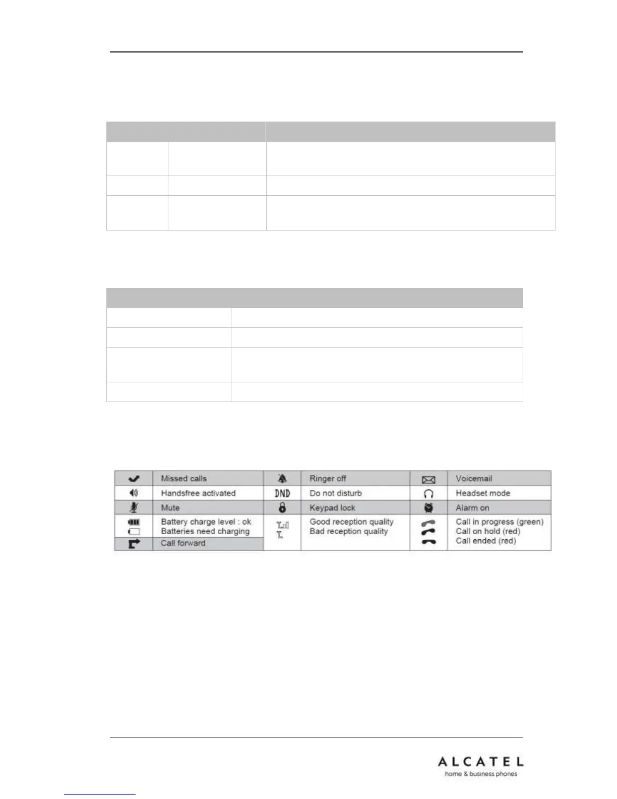 The table below summarizes the icons Alcatel IP20 displays on its LCD.
