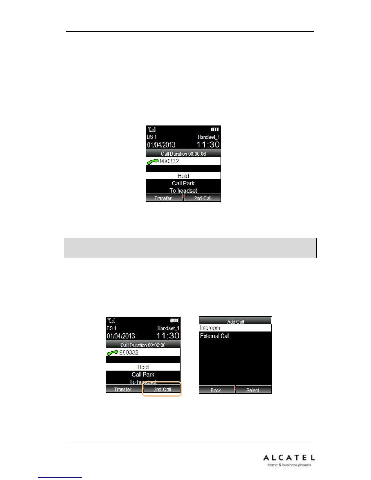 Note: It is not necessary to press Hold function first to perform a second call or call