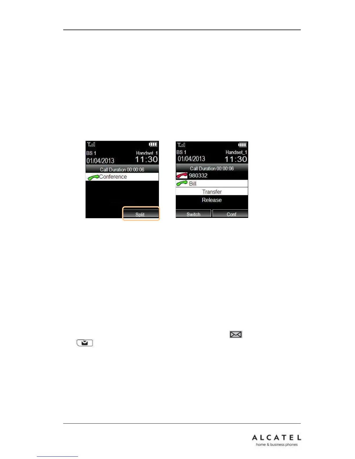 During the conference, you can press Split soft key to split the 3-way call into two lines