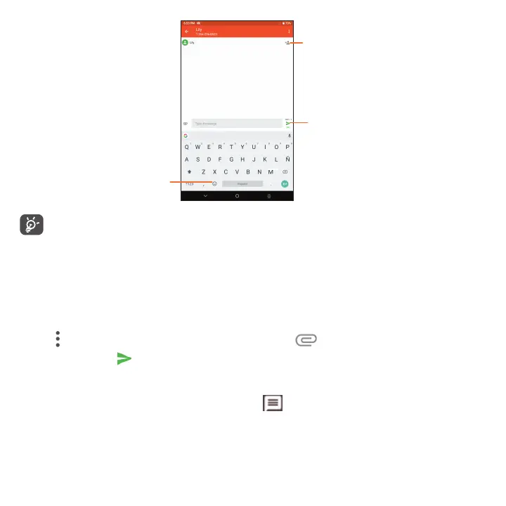 to access other options, such as inserting a Contact. Tap to attach a picture, video, or audio.