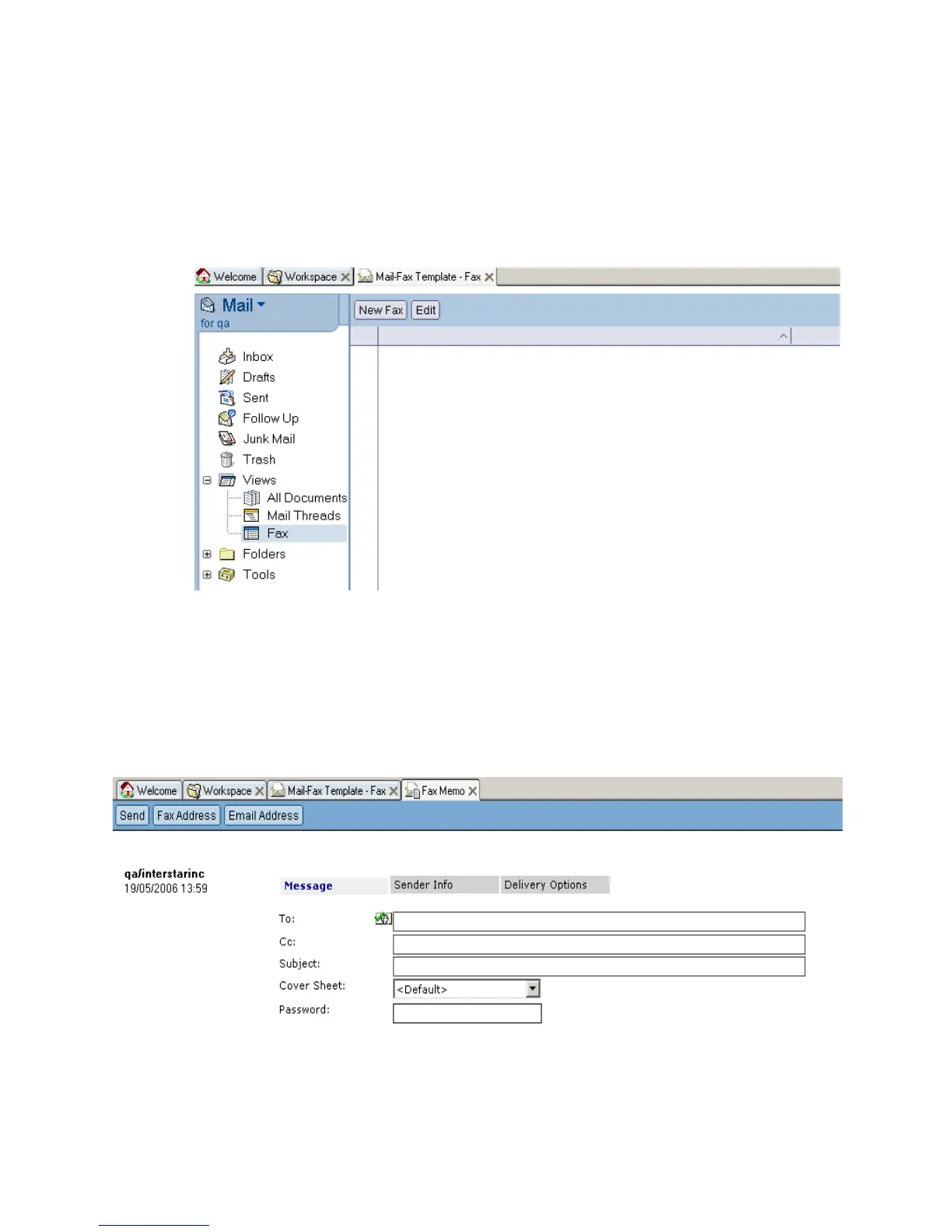 (corresponding to the Fax item in the Views selection of the left-hand