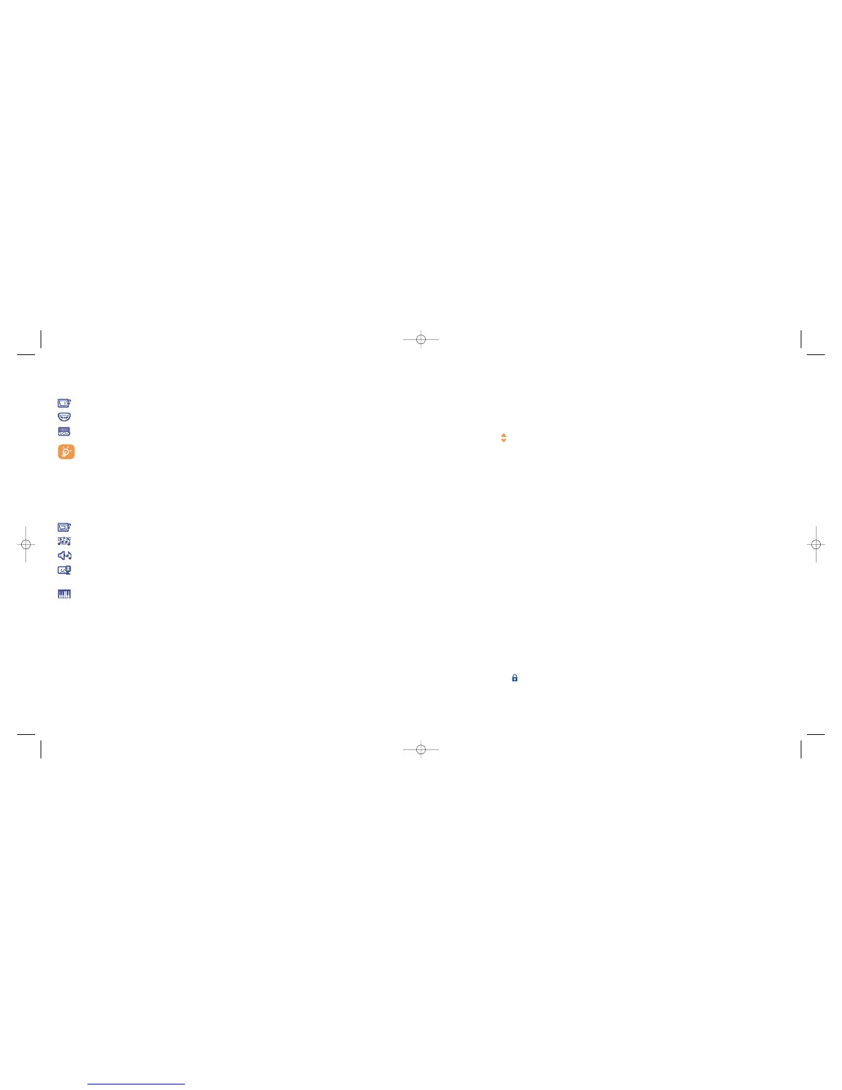 Choose a sound for the ON/OFF screen, for an incoming call, a message alert or an alarm (see page 50).