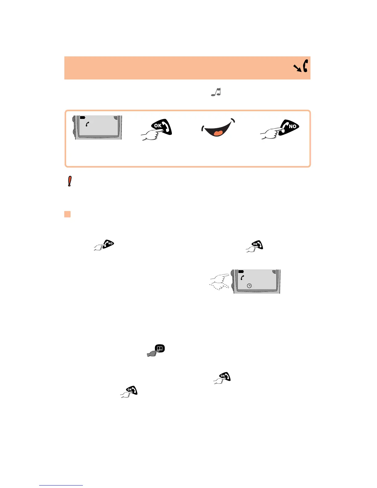 An incoming call is indicated by a ringing tone and flashing of the green