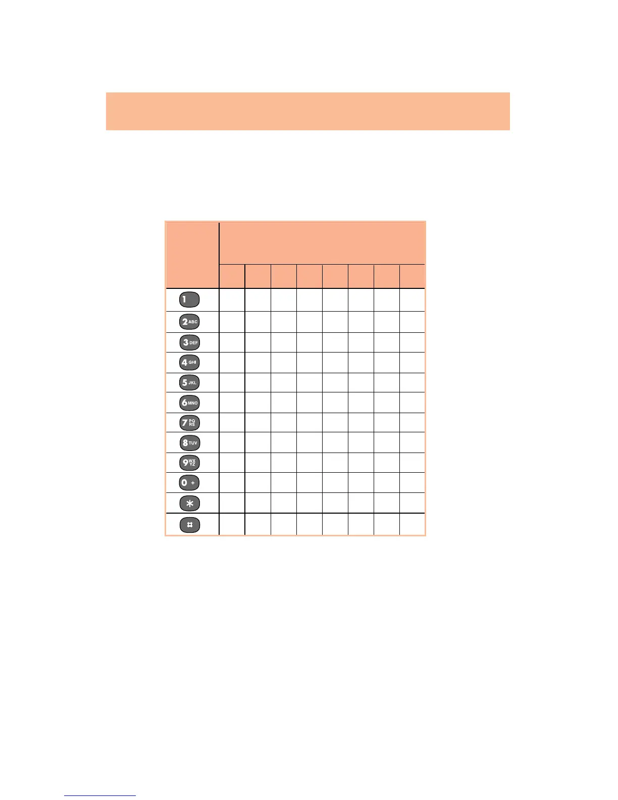 Each keypad key can be used to access several characters in accordance