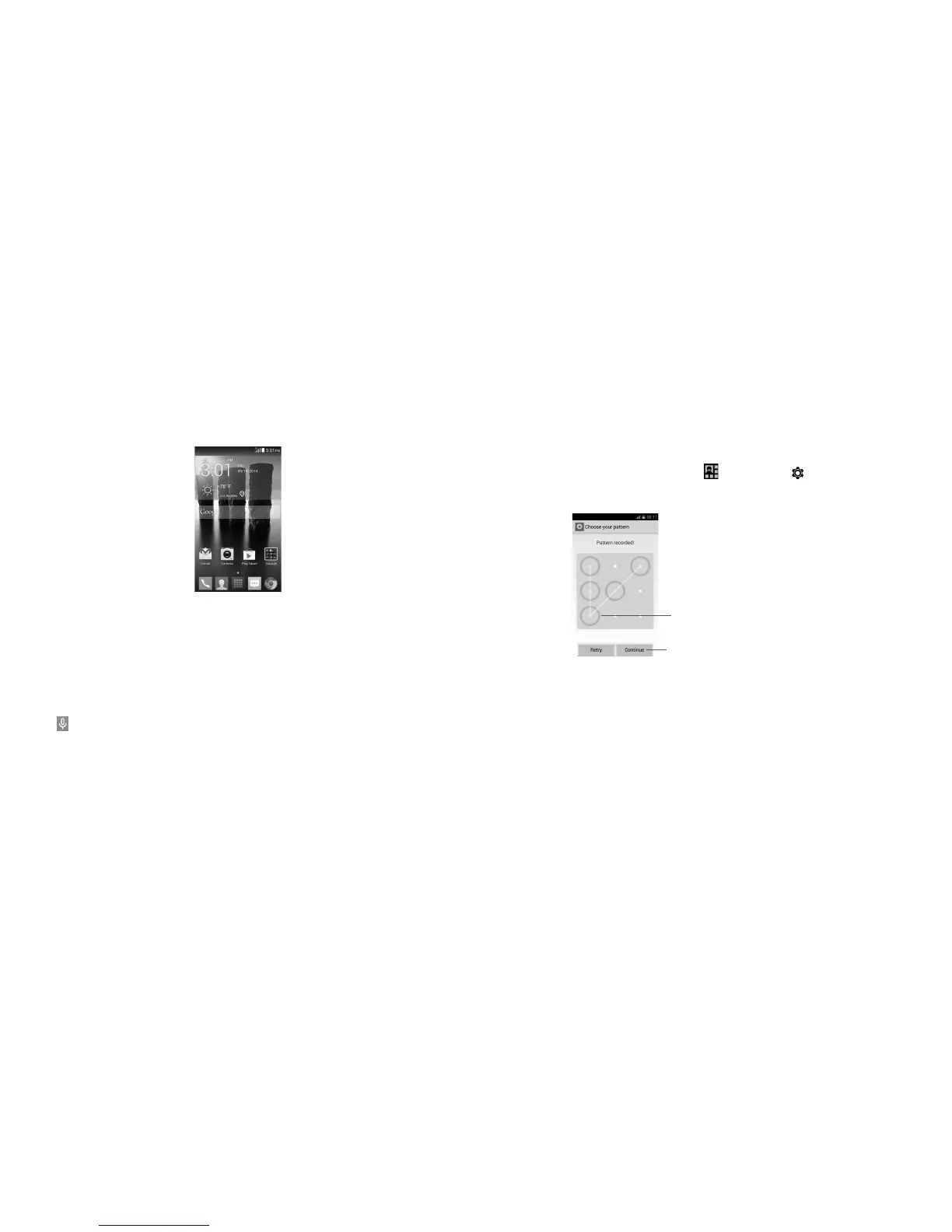 To create a screen unlock pattern (refer to section “Screen lock”for detail settings)