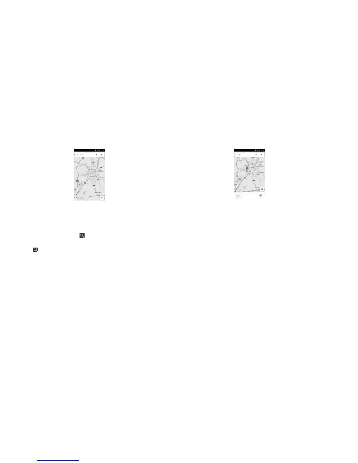 While viewing a map, touch the search icon to activate search function.