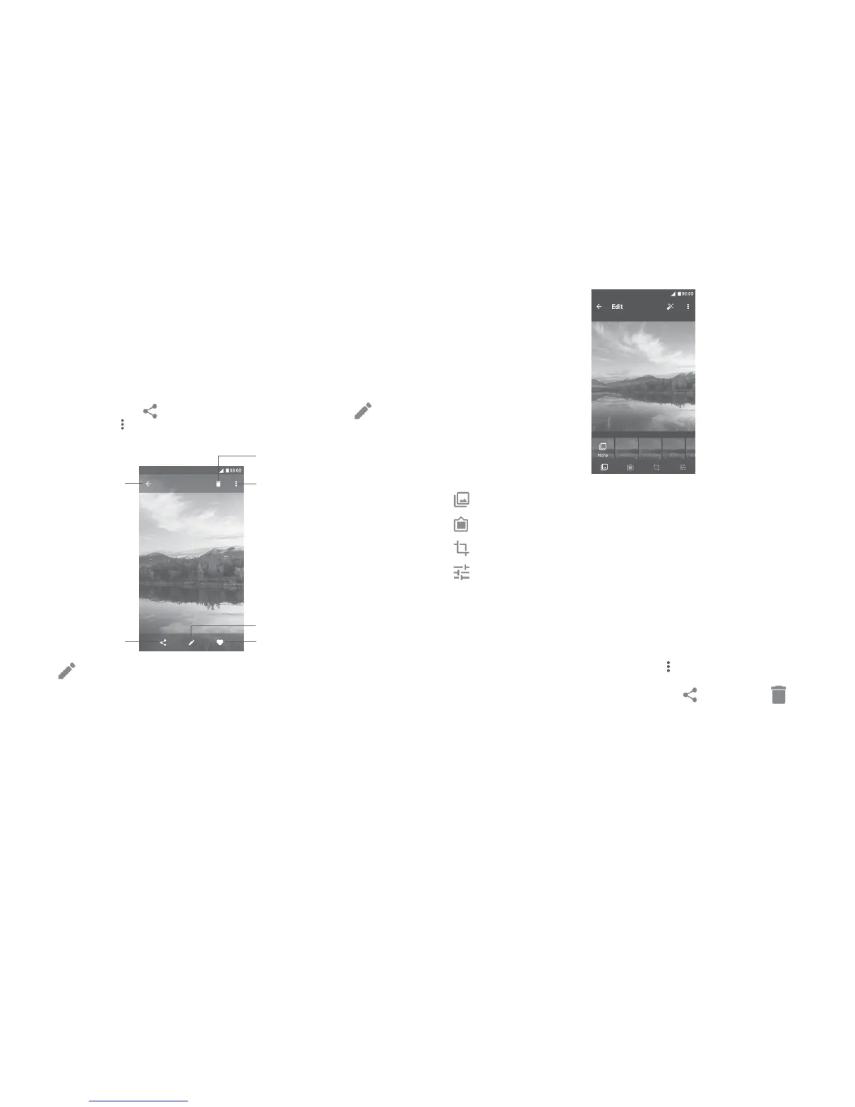picture view. Touch the icon to share the picture, or edit icon to edit