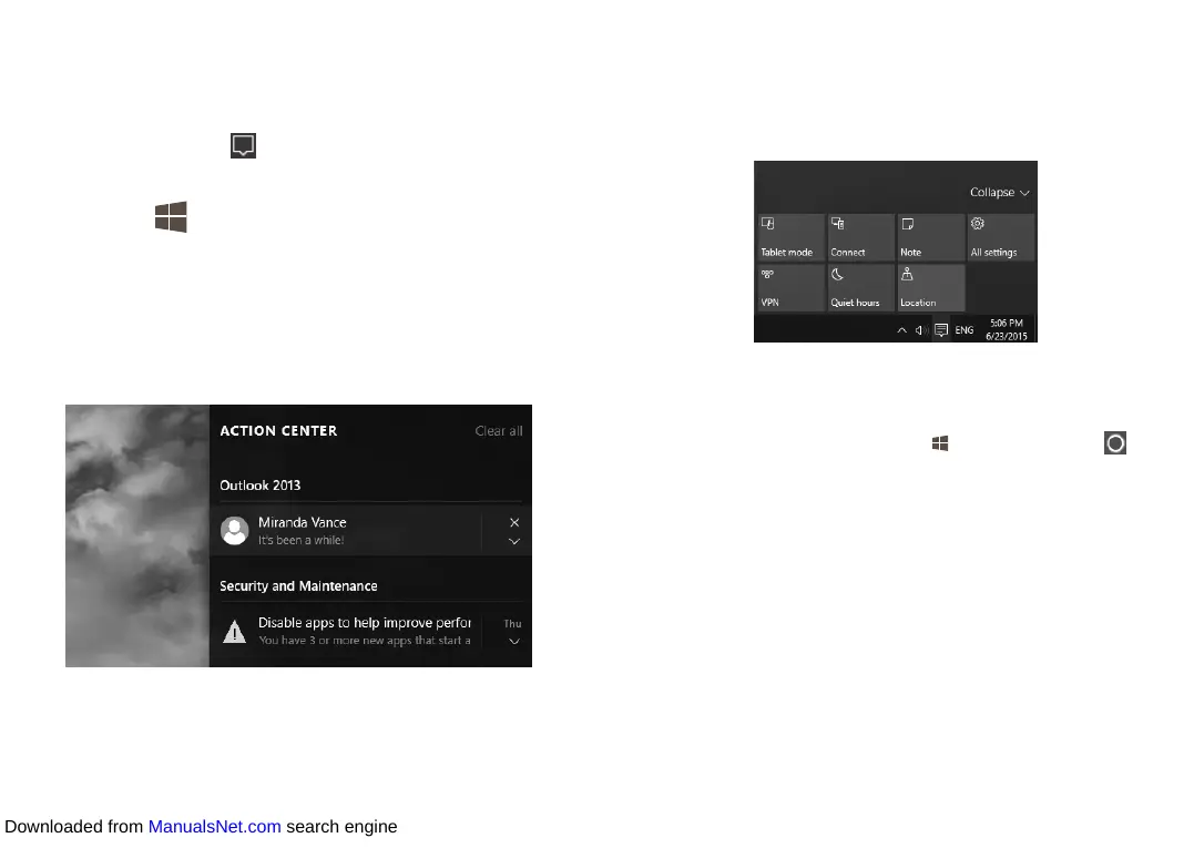 • Select Action center in the taskbar.
