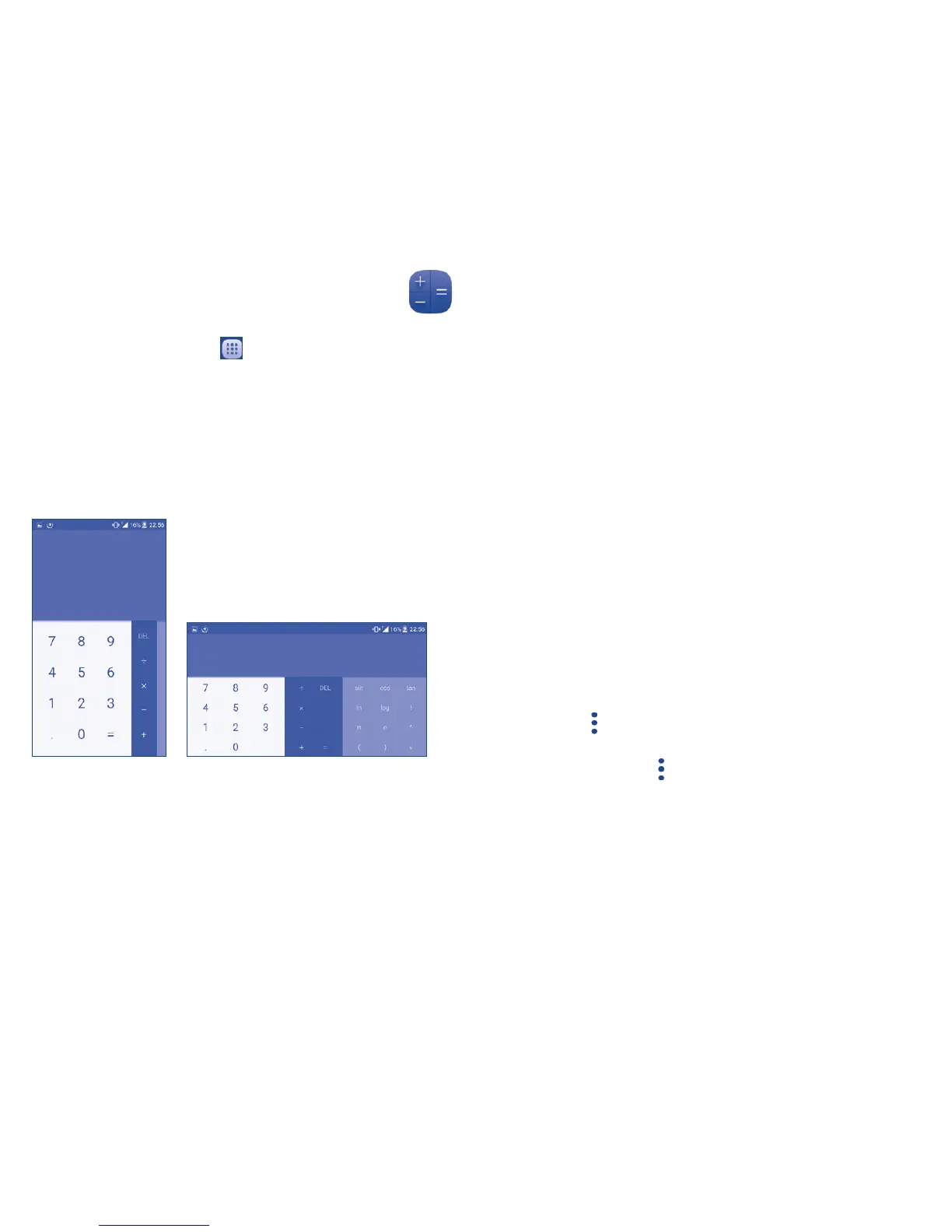 second number, then touch “=” to display the result. Touch DEL to delete