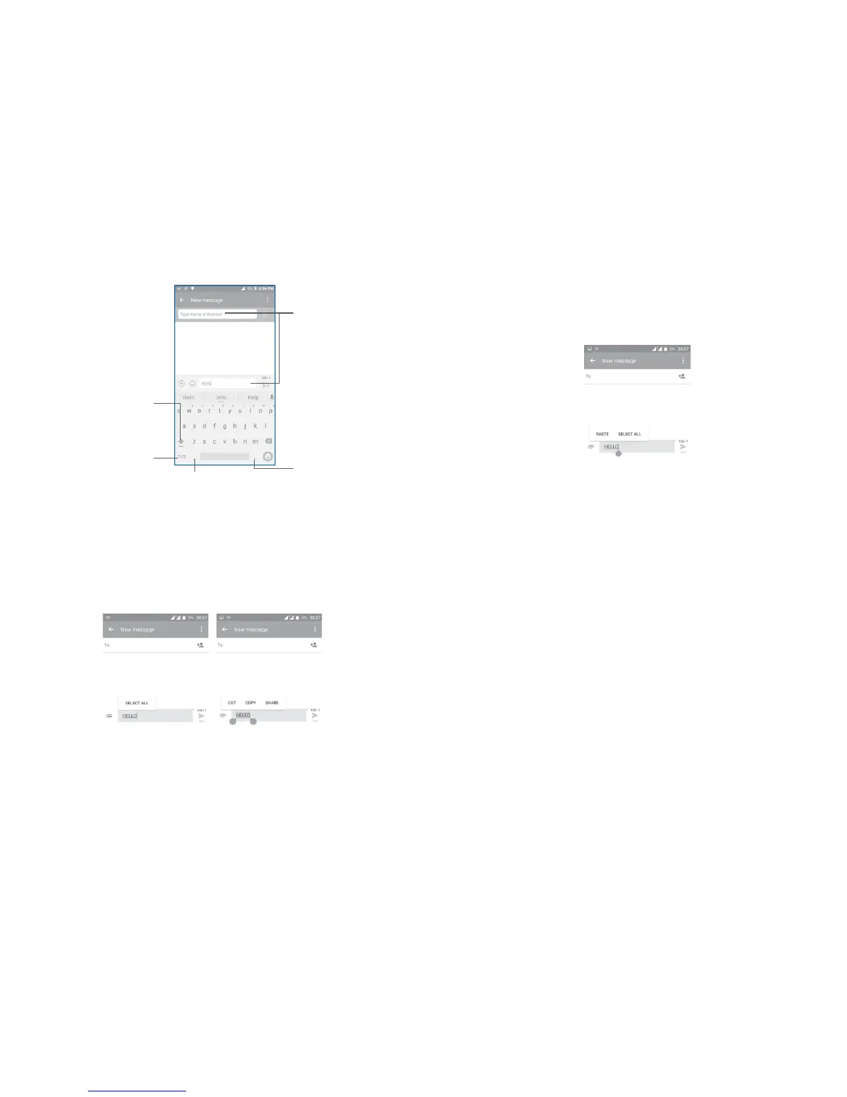 •Touch where you want to type, or long press a blank space, the cursor will