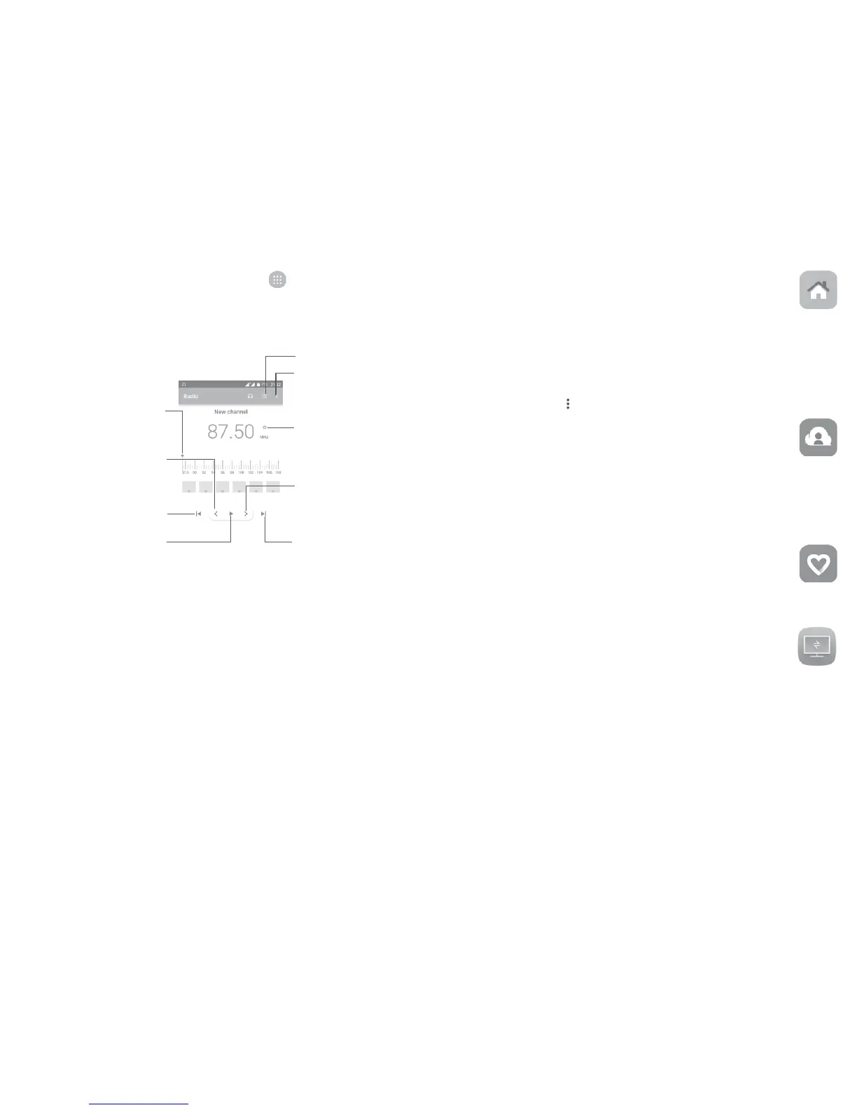 •Save channels Save the current station to the channel list.