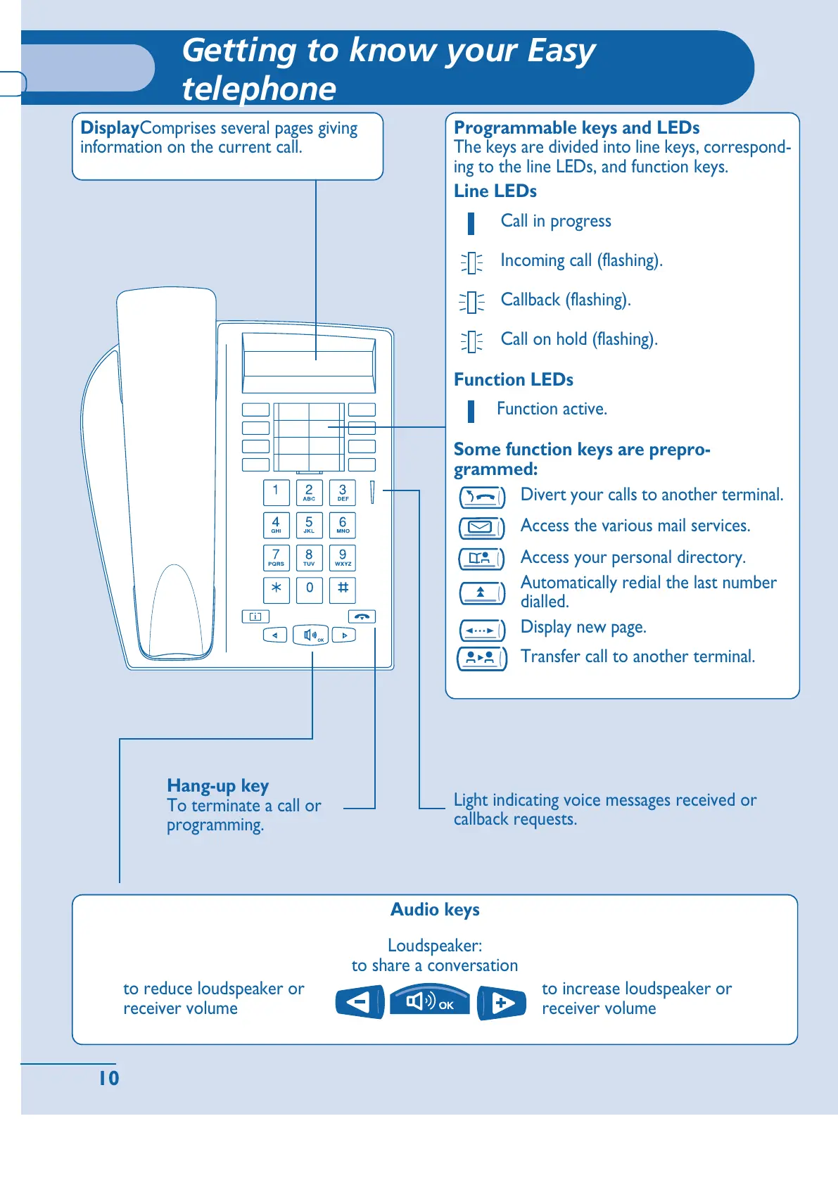 ing to the line LEDs, and function keys.