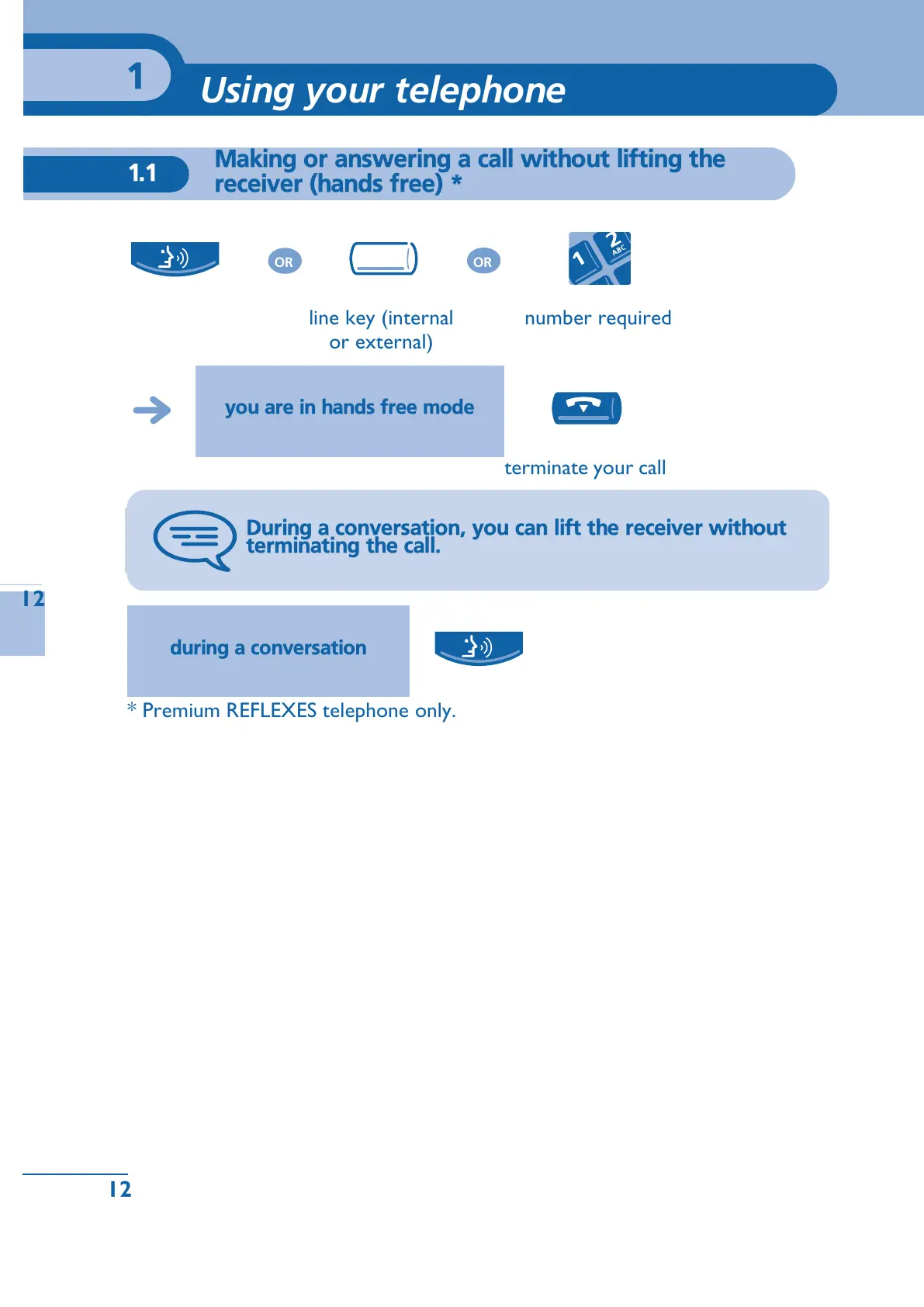 Alcatel Premium Reflexes - Using your telephone; Making or Answering a Call Hands-Free