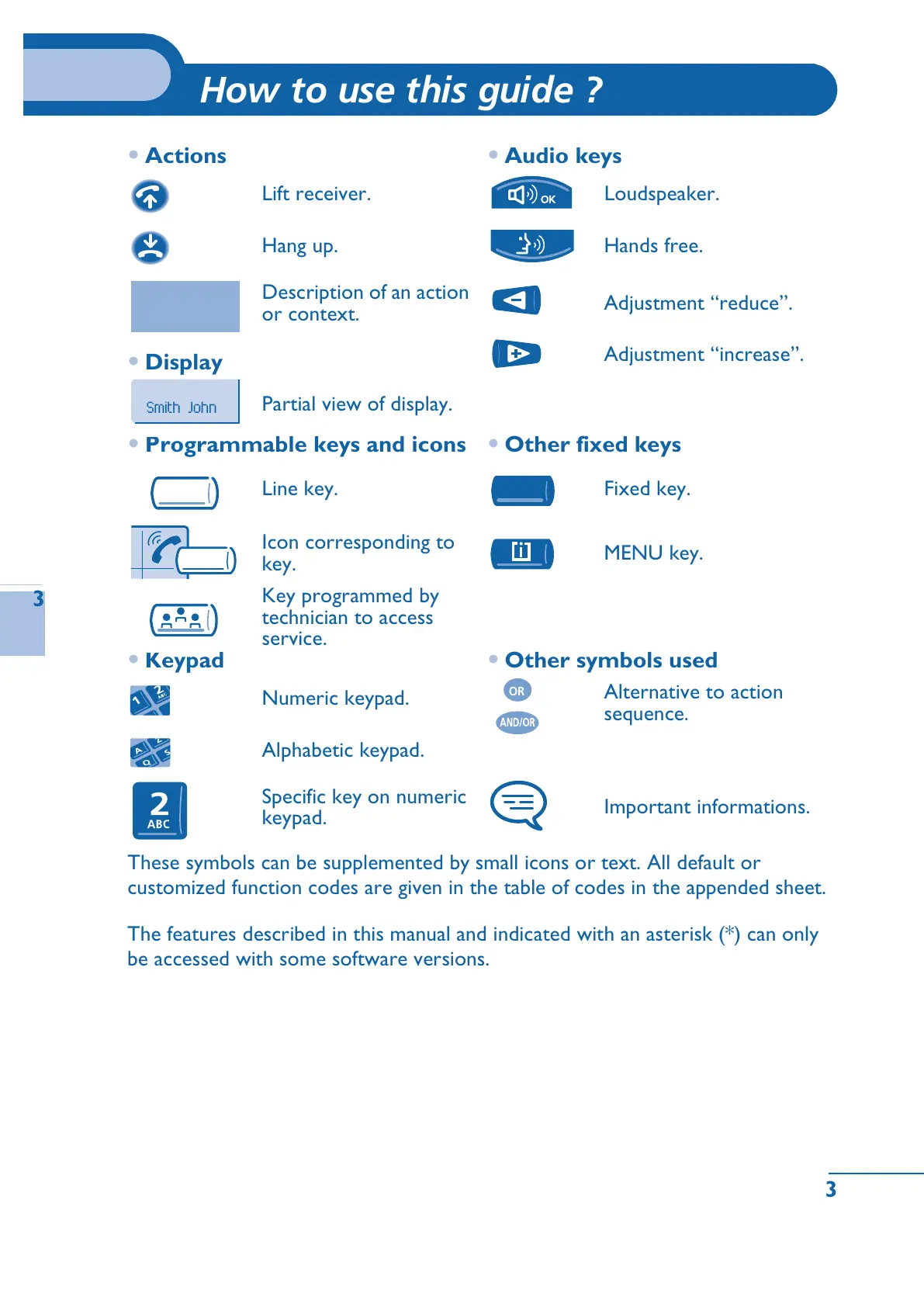 • Programmable keys and icons • Other fixed keys