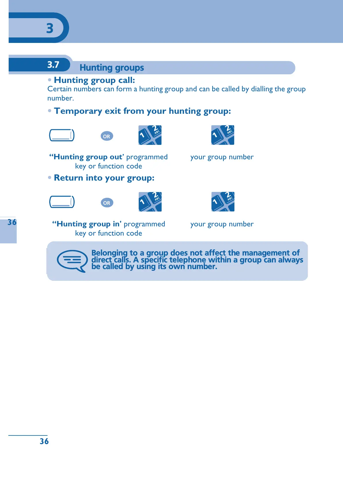 direct calls. A specific telephone within a group can always