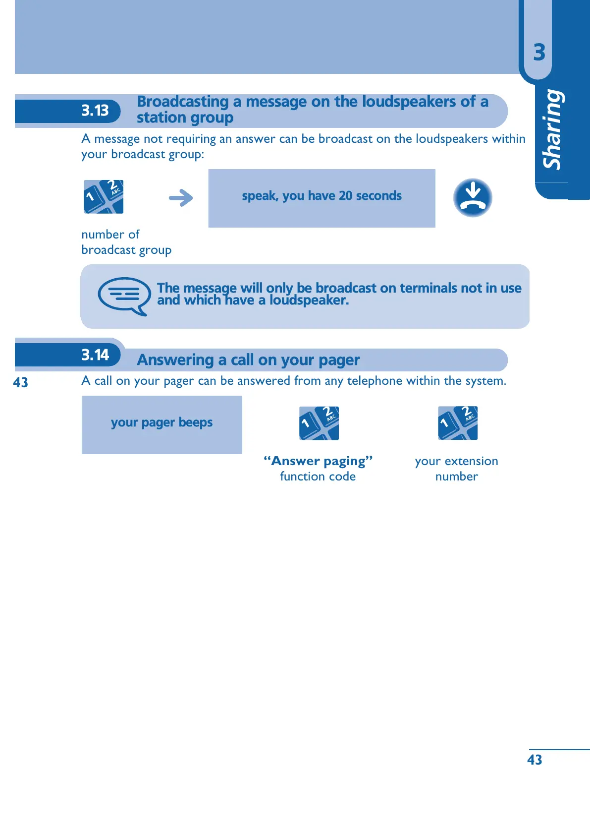 A message not requiring an answer can be broadcast on the loudspeakers within