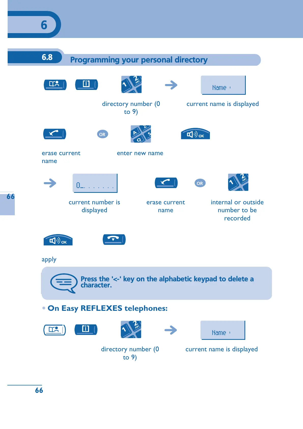 On Easy REFLEXES telephones: