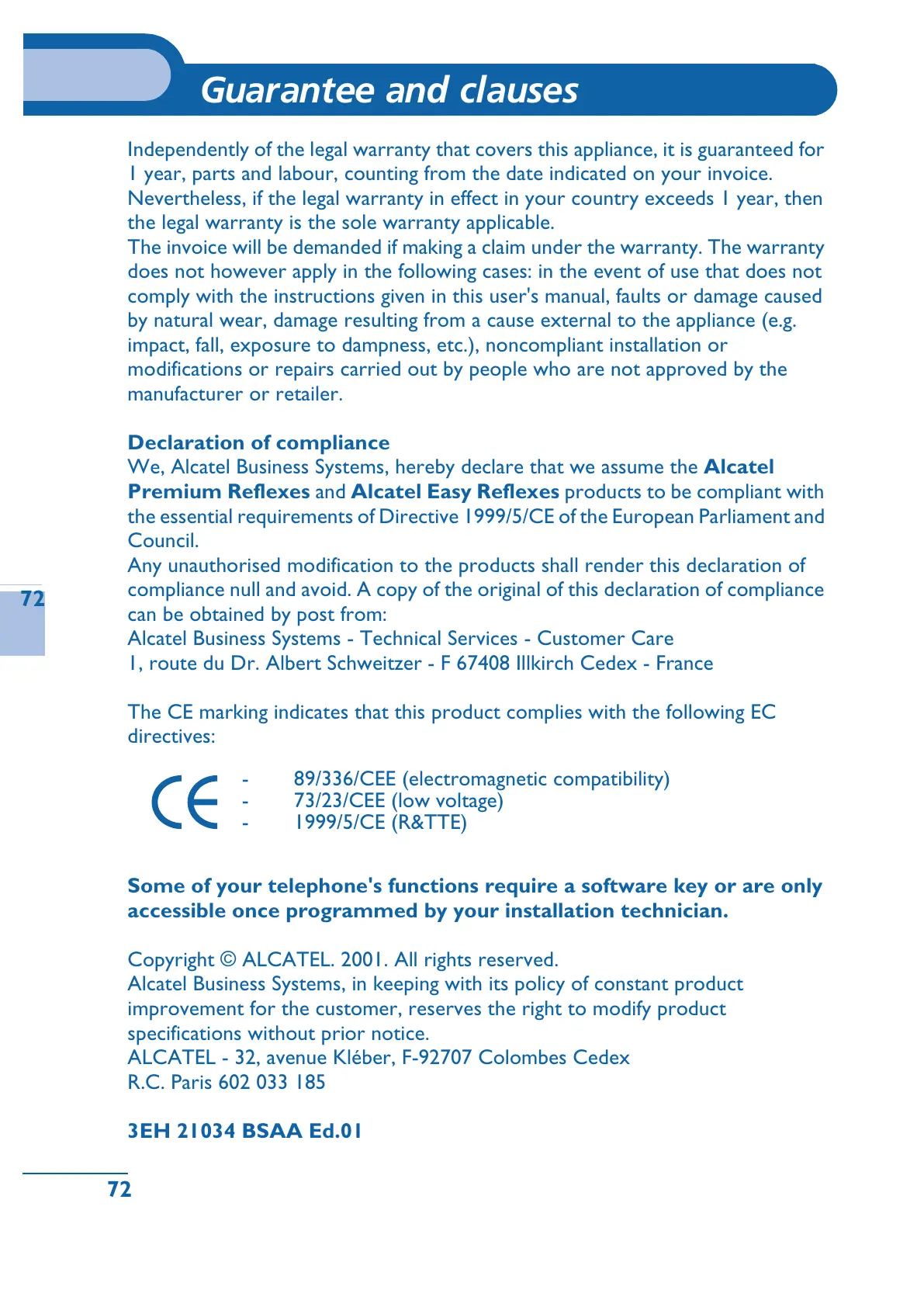 We, Alcatel Business Systems, hereby declare that we assume the Alcatel