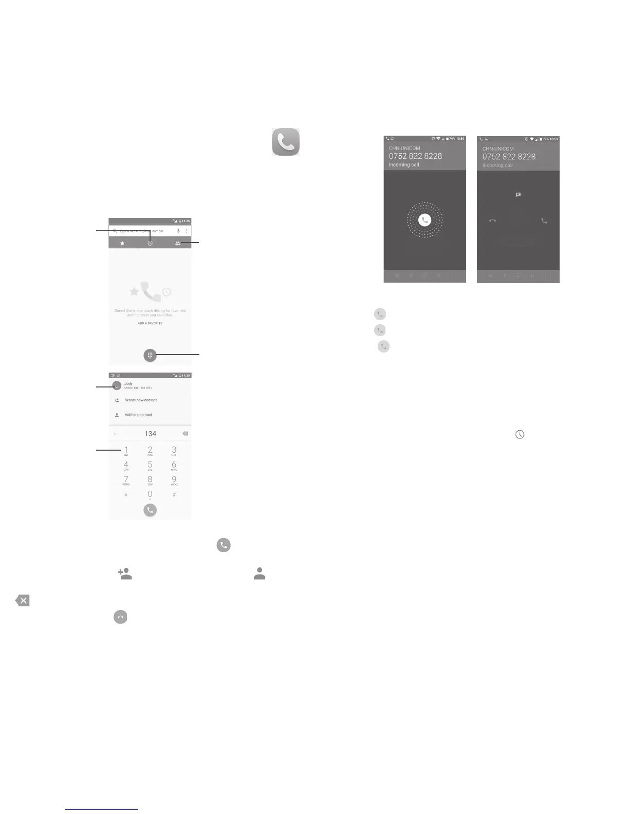Call log or Contacts by touching tabs, then touch to place the call.