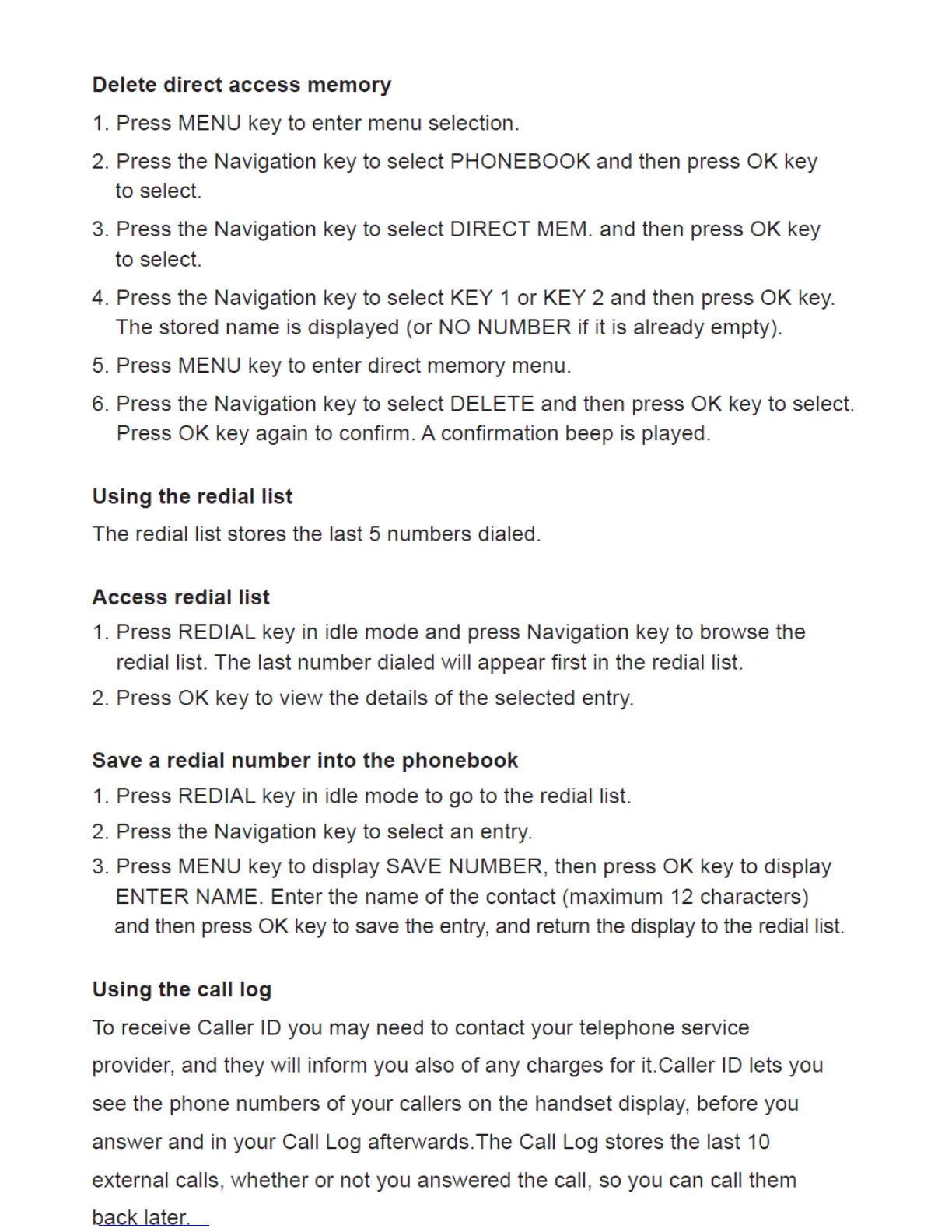 Alcatel Versatis E150 - Redial List and Call Log; Accessing and Saving Redial Numbers; Using the Call Log