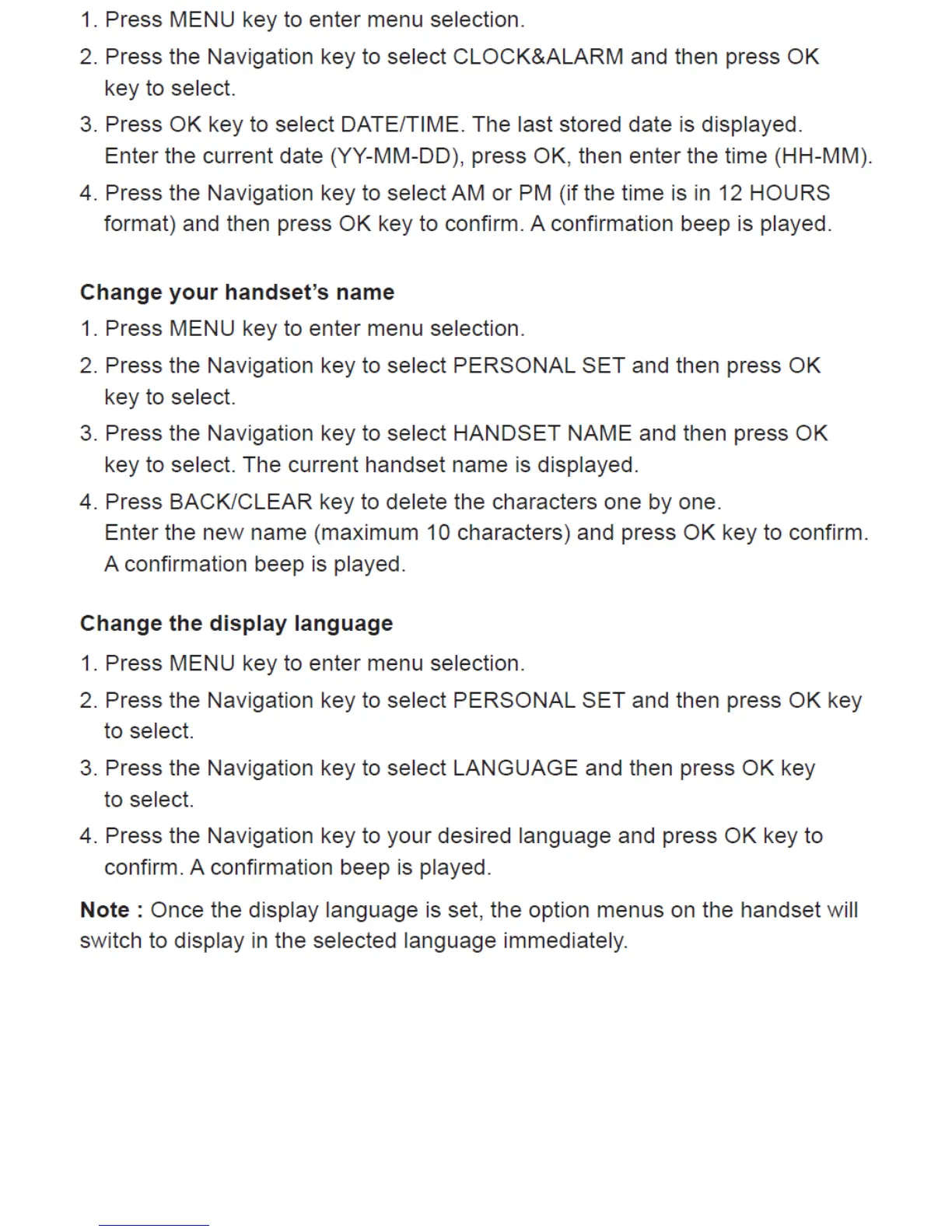 Alcatel Versatis E150 - Customizing Handset Settings; Changing Handset Name; Changing Display Language