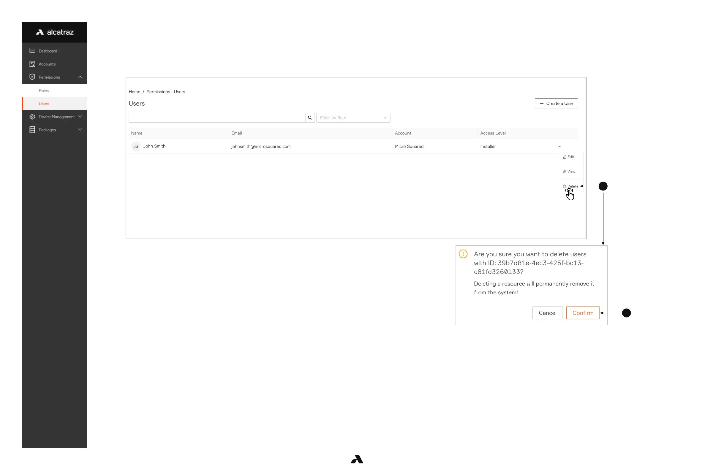 1. Go to Permissions -> Users and identify the user you wish to delete
