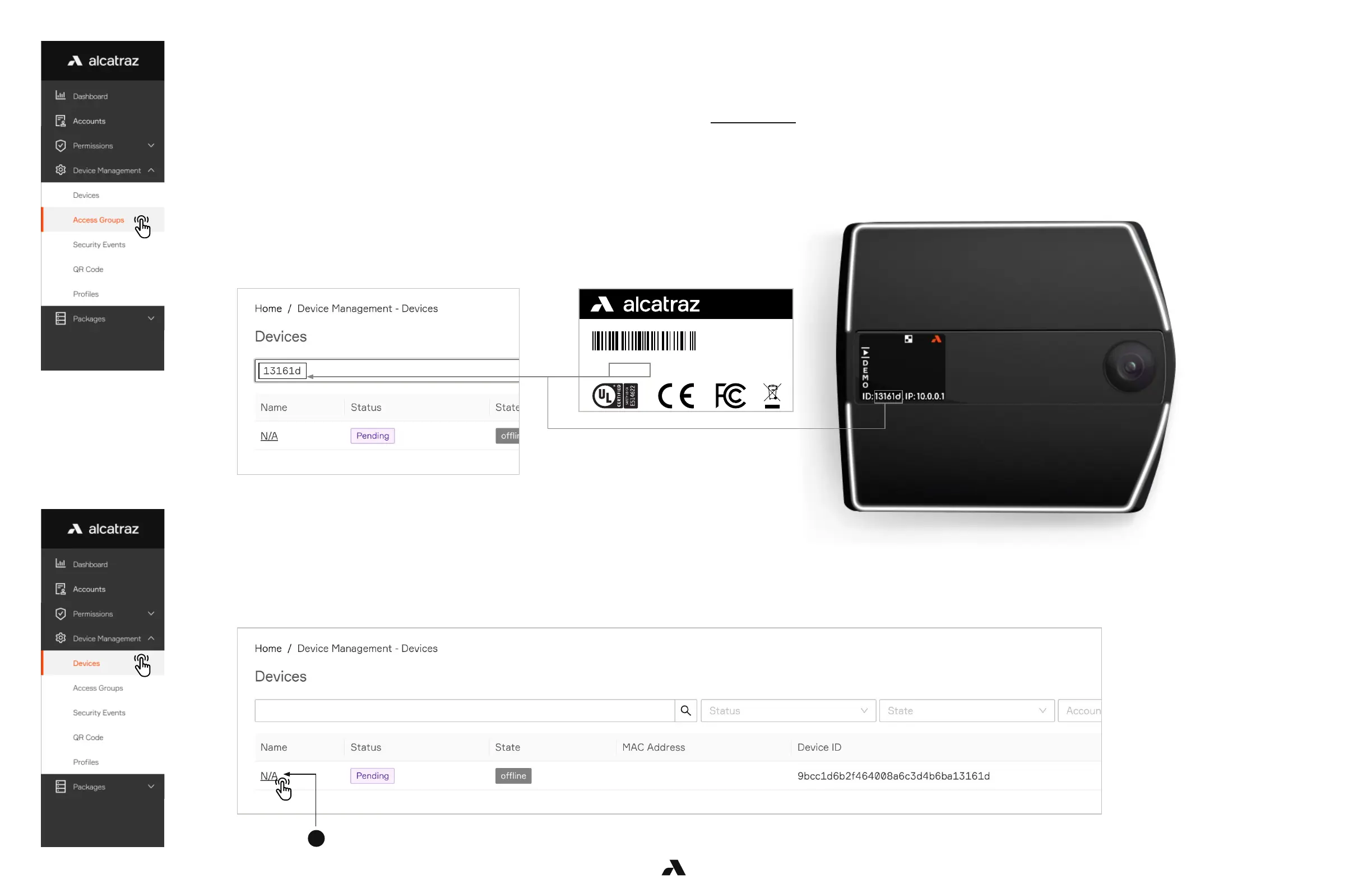 2. The Rock will display Name = N/A, Status = Pending, State = Offline.
