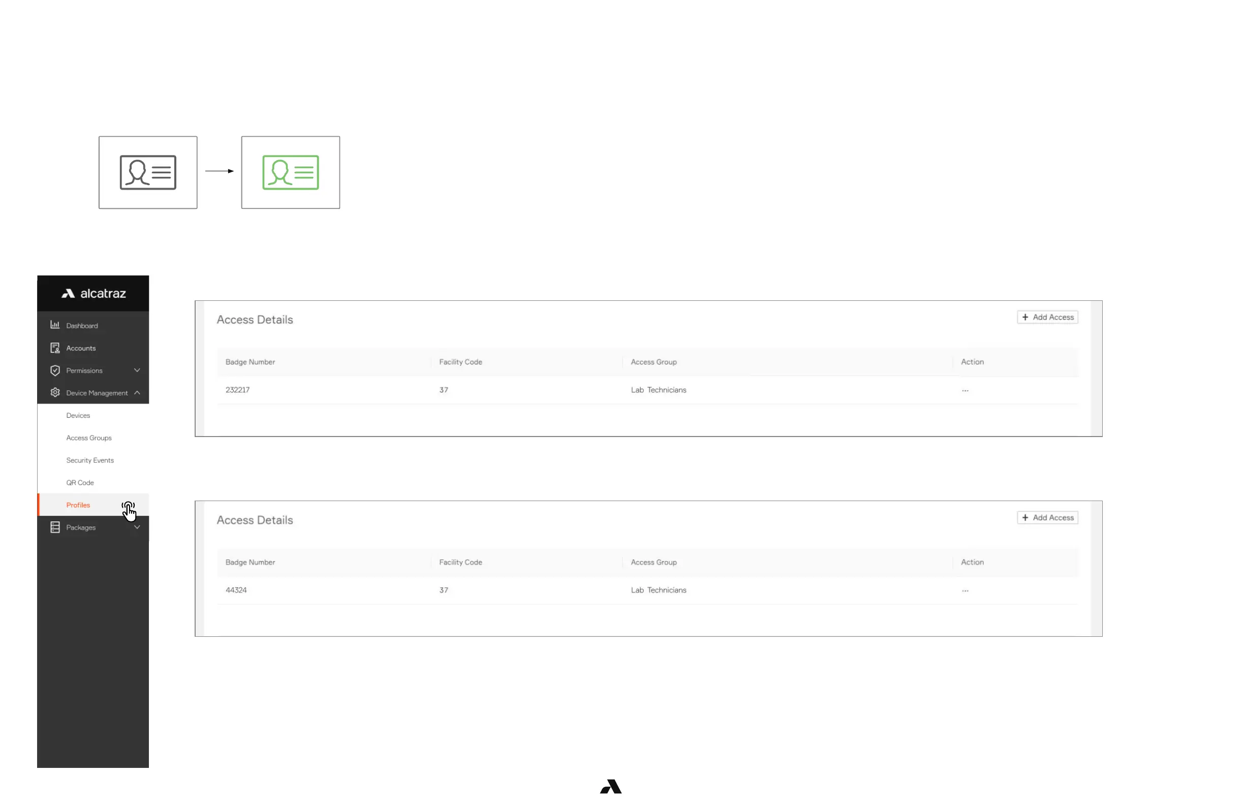 Once a user is enrolled, if at any time, the user needs to switch to a new badge, they can walk up to an enrollment Rock and swipe their new badge to