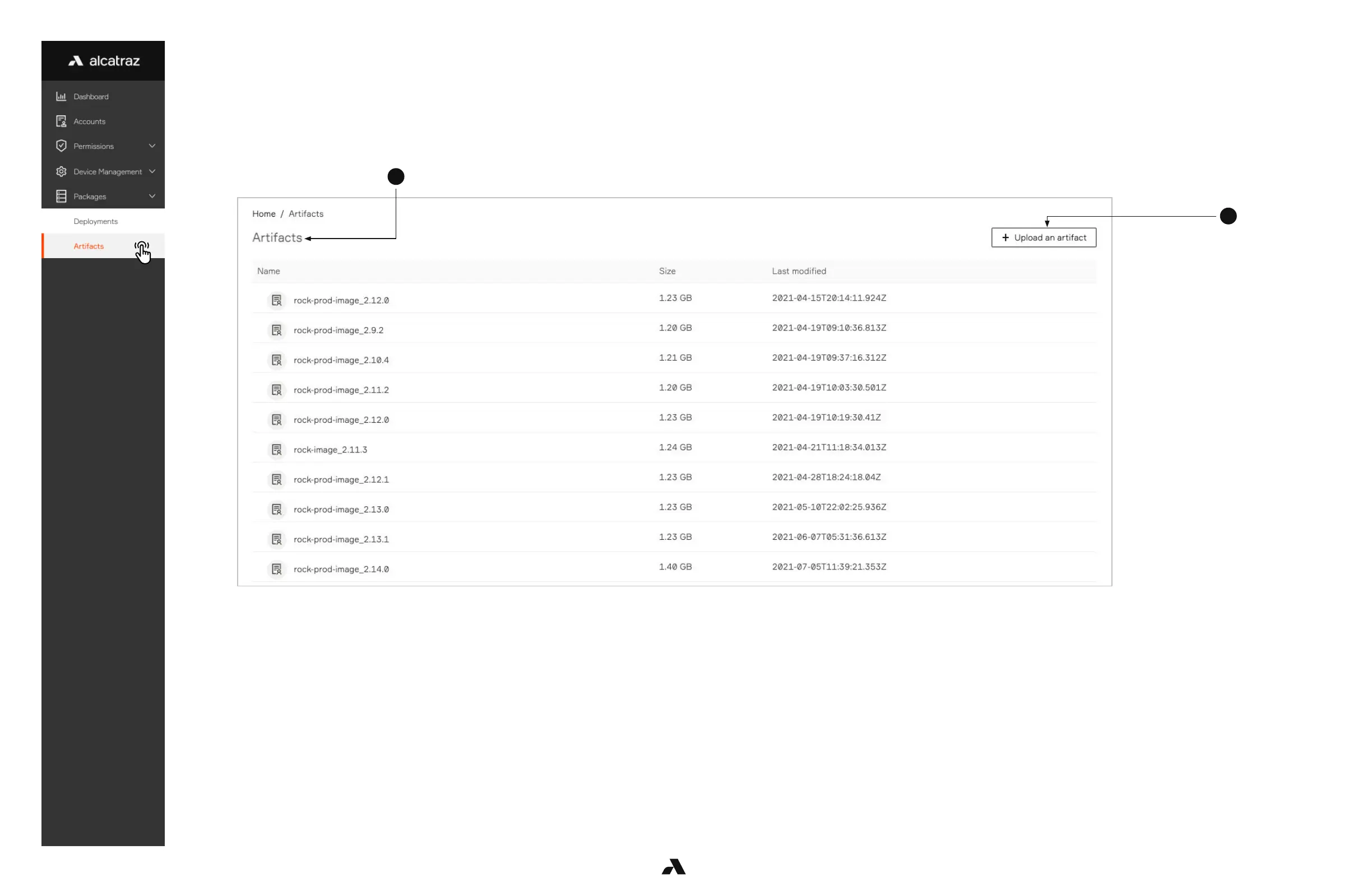 3. On-prem Only - Click Upload an artifact and select the file that was downloaded to your computer from an Alcatraz AI link. Uploading can take several minutes