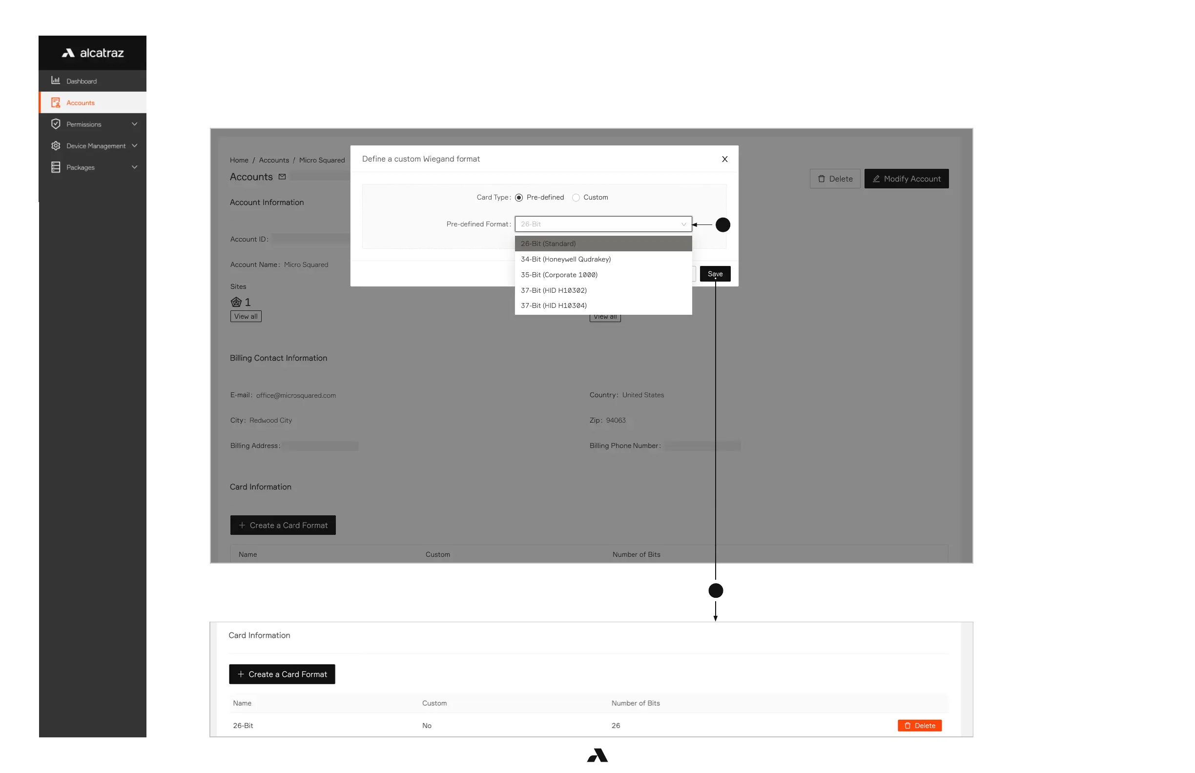1. A selection of Pre-defined Card Formats can be configured by selecting from the drop down
