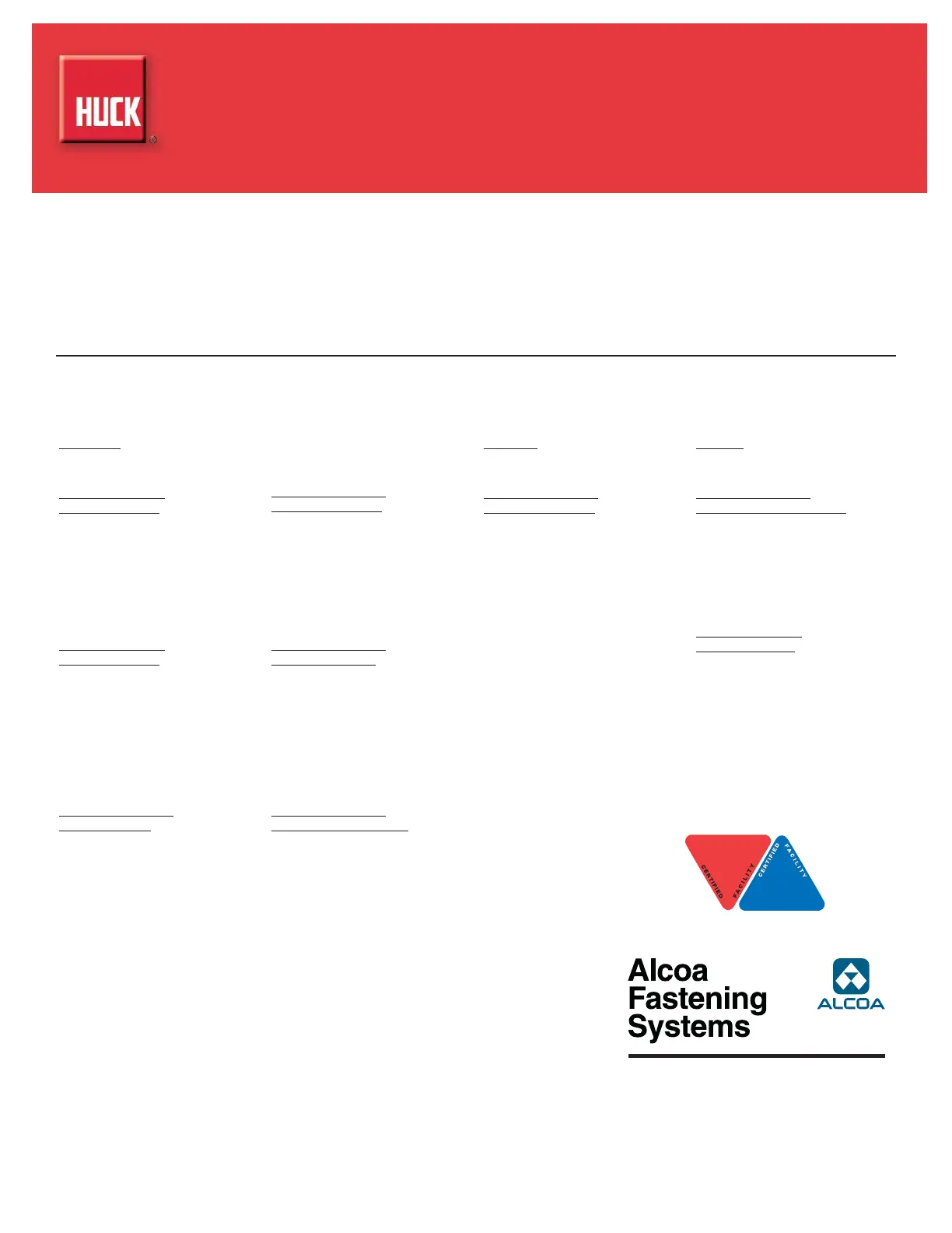 1 Corporate Drive, Kingston, NY 12401 • Tel: 800-431-3091 • Fax: 845-334-7333 • E-mail: hkitoolinfo@alcoa.com • www.alcoafasteningsystems.com