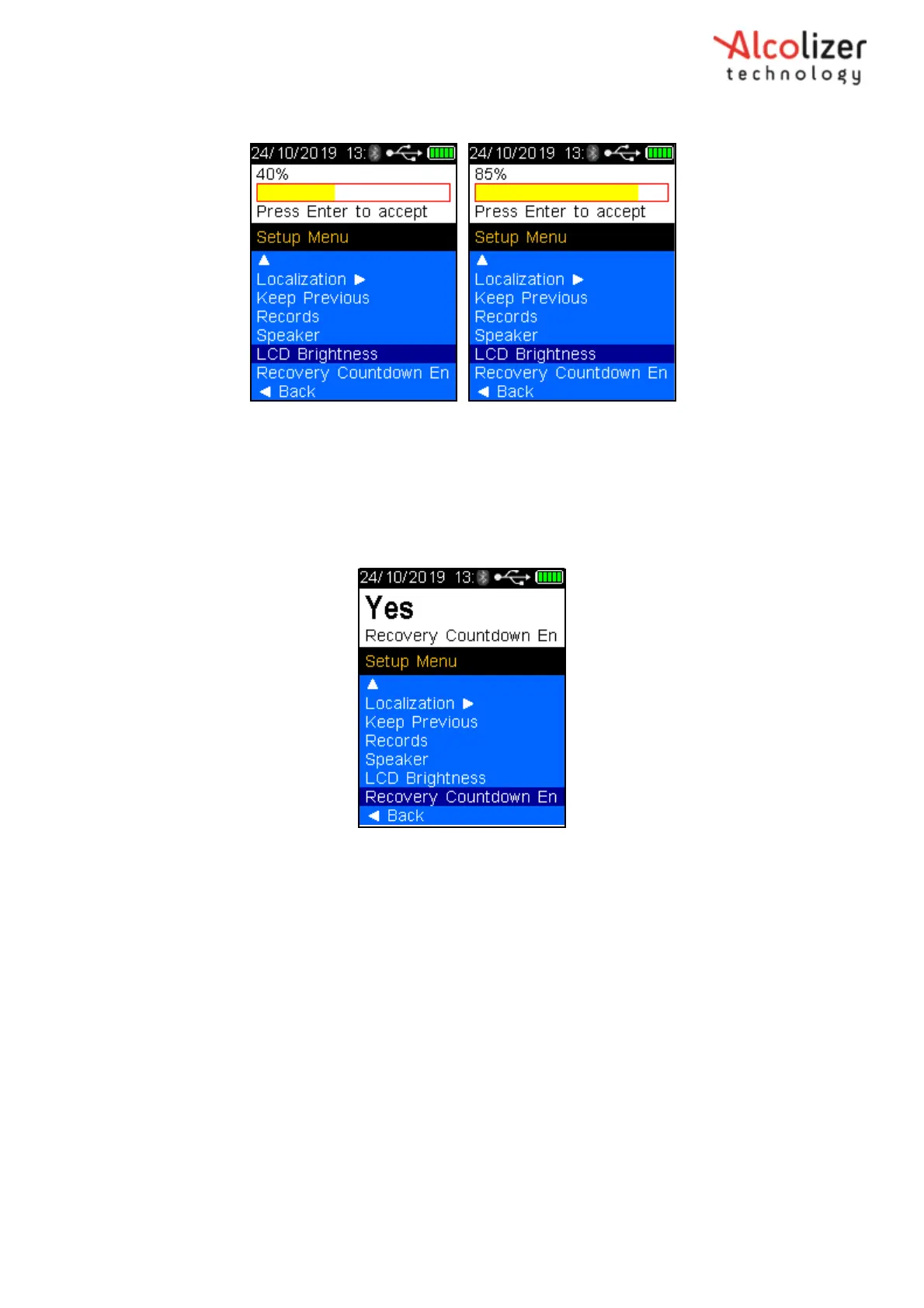 recovery after a breath test. Use the Test Key to toggle between Yes and No. Yes, will activate the