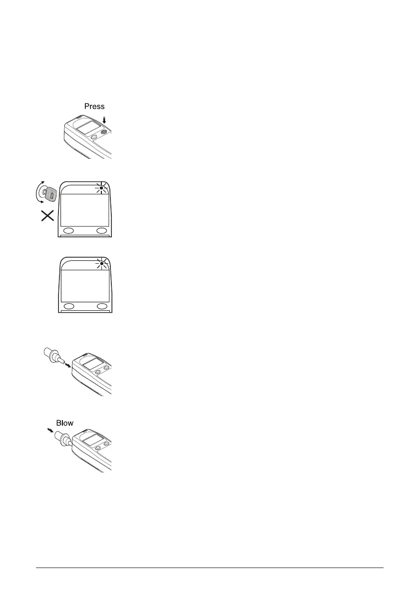 4. Blow into the mouthpiece with moderate force for 3 seconds,