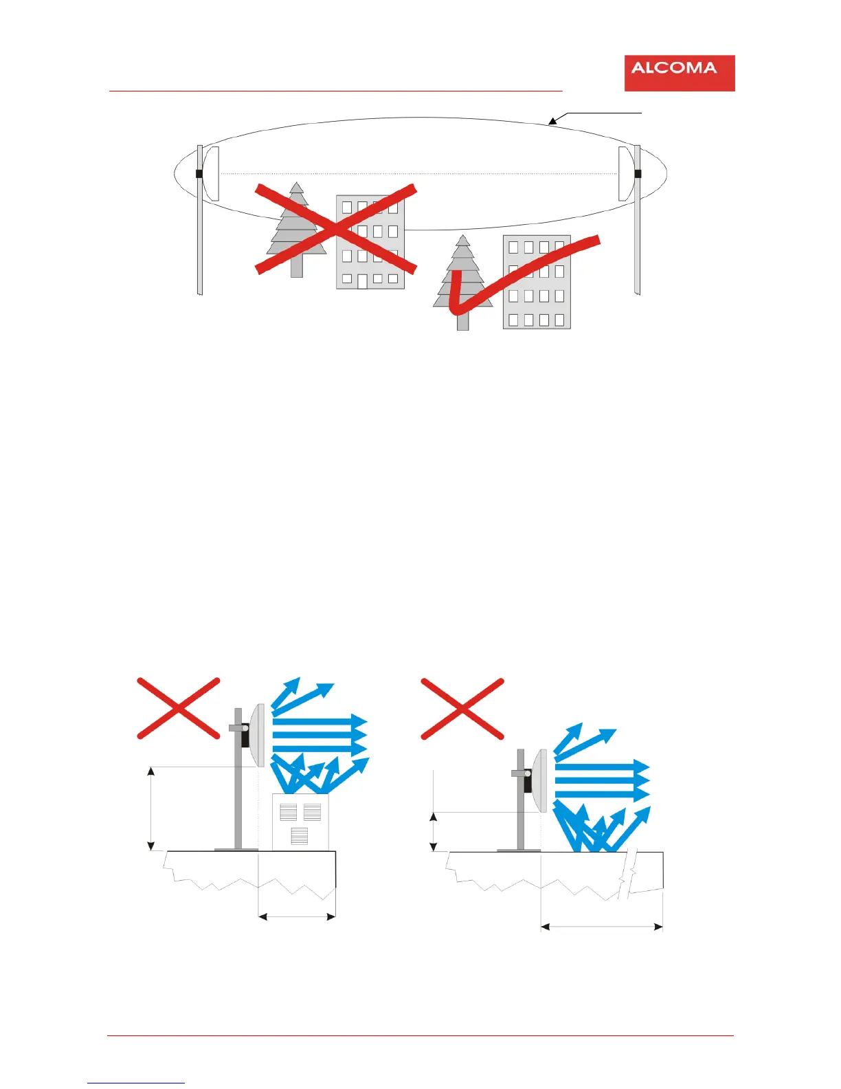 elevator shaft…). The following figures show incorrect and correct ways of installation of radio relay link